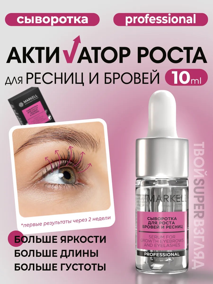 Сыворотка для роста бровей и ресниц MARKELL – это эффективный способ вернуть вашим бровям и ресницам густоту, силу и блеск. Формула сыворотки, разработанная с учетом потребностей тонких и ослабленных волосков, стимулирует их рост, предотвращает выпадение и укрепляет структуру. Регулярное применение сыворотки MARKELL подарит вам выразительный взгляд и ухоженный внешний вид. Эффективное средство с активными компонентами для увеличения густоты и усиления роста и объема бровей и ресниц. Средство восстанавливает волоски и ухаживает за ними после процедуры наращивания и ламинирования. Можно использовать для мужских усов и бороды, волос на голове. Сыворотка для бровей и ресниц обладает легкой текстурой, что обеспечивает комфортное нанесение и быстрое впитывание. Ее формула бережно ухаживает за волосами, питая и увлажняя их, что способствует их здоровому росту.