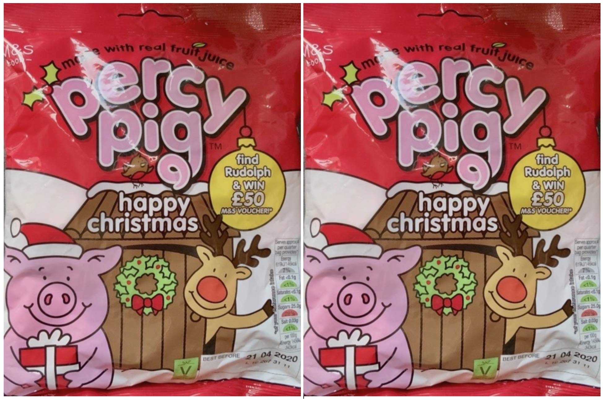 Marks Spencer Percy Pig Happy Christmas – 2 x 170 g Végétarien