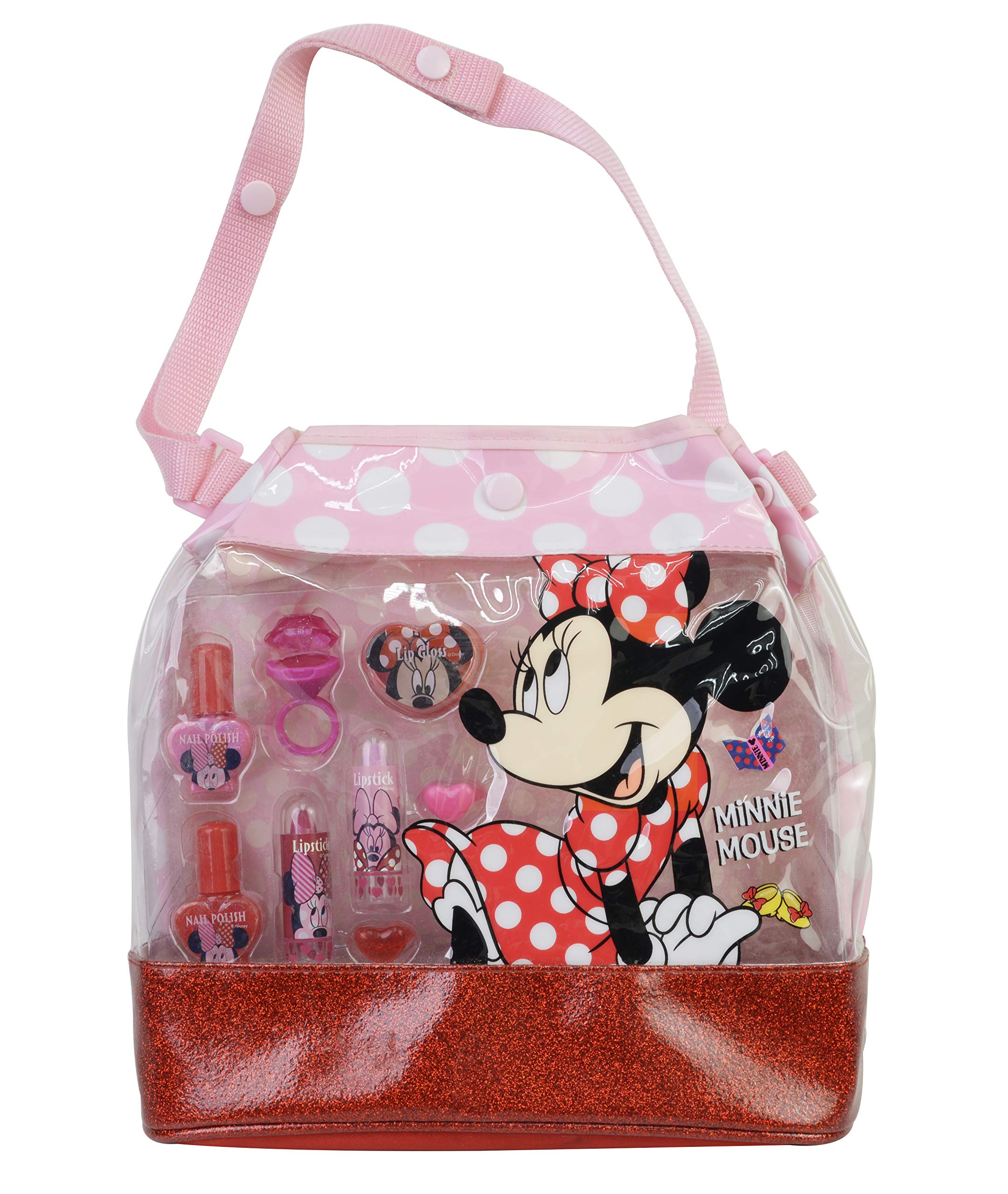 This pretty Minnie Beauty handbag with Minnie motif and sweet dot: 2 lipsticks, 2 water-soluble nail polishes and 2 rings in pink and red, 1 pink lip gloss ring and 1 red lip gloss.A perfect set for small Minnie mice.For younger users, a skin detention test is recommended - apply on the inside of the elbow and wait 30-60 minutes.Danger!Not suitable for children under 3 years.Small parts.Choking risk.Danger!Contains perfumes that can cause allergies.Set contains real cosmetics.Parental supervision is recommended for inexperienced users.As with practically all cosmetics, skin irritation can occur in individual users.In such a case, end use immediately.Please highlight these product information for possible future use!Ingredients were carefully selected to meet high demands. Warnings Danger!Not suitable for children under 3 years.Small parts.Choking risk.Danger!Contains perfumes that can cause allergies.Set contains real cosmetics.Parental supervision is recommended for inexperienced users.As with practically all cosmetics, skin irritation can occur in individual users.In such a case, end use immediately.Please highlight these product information for possible future use!Ingredients were carefully selected to meet high demands. Set contains: 2x lipstick, 2x nail polish, 2x ring, 1x lip gloss ring, 1x lip gloss More scope of delivery: 2x lipstick, 2x nail polish, 2x ring, 1x lip gloss ring, 1x lip gloss.Beautiful beauty gift set for girls and Minnie Mouse fans and suitable for children from 3 years.With this stylish and practical handbag, all of your beauty things are at hand and tidy, perfect for on the go, on vacation or visiting your best friend.The practical pocket with a push button lock contains great face painting such as red lip gloss, various lipsticks, water -soluble nail polishes, a pink lip gloss ring, as well as rings in pink and red.Magically beautiful beauty bag with cute Minnie Mouse Print and sweet dots contains everything you need to make up and style. Diese hübsche Minnie Beauty Handtasche mit Minnie-Motiv und süßen Pünktchen beinhaltet: 2 Lippenstifte, 2 wasserlösliche Nagellacke und 2 Ringe in rosa und rot, 1 pinker Lipglossring und 1 roter Lipgloss. Ein perfektes Set für kleine Minnie-Mäuse. Für jüngere Anwender wird ein Hautverträglichkeitstest empfohlen - auf der Innenseite des Ellenbogens auftragen und 30-60 Minuten warten. Achtung! Nicht für Kinder unter 3 Jahren geeignet. Kleinteile. Erstickungsgefahr. Achtung! Enthält Duftstoffe, die Allergien auslösen können. Set enthält echte Kosmetik. Für unerfahrene Anwender wird elterliche Aufsicht empfohlen. Wie bei praktisch allen Kosmetika können bei einzelnen Anwendern in seltenen Fällen Hautreizungen auftreten. In einem solchen Fall Verwendung umgehend beenden. Bitte heben Sie diese Produktinformationen für mögliche zukünftige Verwendung auf! Inhaltsstoffe wurden sorgfältig ausgewählt, um hohen Ansprüchen zu genügen. WARNHINWEISE Achtung! Nicht für Kinder unter 3 Jahren geeignet. Kleinteile. Erstickungsgefahr. Achtung! Enthält Duftstoffe, die Allergien auslösen können. Set enthält echte Kosmetik. Für unerfahrene Anwender wird elterliche Aufsicht empfohlen. Wie bei praktisch allen Kosmetika können bei einzelnen Anwendern in seltenen Fällen Hautreizungen auftreten. In einem solchen Fall Verwendung umgehend beenden. Bitte heben Sie diese Produktinformationen für mögliche zukünftige Verwendung auf! Inhaltsstoffe wurden sorgfältig ausgewählt, um hohen Ansprüchen zu genügen. SET ENTHÄLT: 2x Lippenstift, 2x Nagellack, 2x Ring, 1x Lipglossring, 1x Lipgloss MehrLieferumfang: 2x Lippenstift, 2x Nagellack, 2x Ring, 1x Lipglossring, 1x Lipgloss. Schönes Beauty-Geschenk-Set für Mädchen und Minnie Mouse-Fans und für Kinder ab 3 Jahren geeignet. Alle deine Beauty-Sachen sind mit dieser stylischen und praktischen Handtasche griffbereit und aufgeräumt, perfekt für unterwegs, im Urlaub oder zu Besuch bei deiner besten Freundin. Die praktische Tasche mit Druckknopfverschluss enthält tolle Kinderschminke wie roten Lipgloss, verschiedene Lippenstifte, wasserlösliche Nagellacke, ein pinker Lipglossring, sowie Ringe in rosa und rot. Zauberhaft schöne Beautytasche mit niedlichen Minnie Mouse Print und süßen Pünktchen enthält alles was du zum Schminken und Stylen brauchst.Markwins Minnie Mouse Beauty Handtasche mit verschiedenen Lippenstiften, Nagellackfarben, Ringen und Lipgloss zum Auftragen