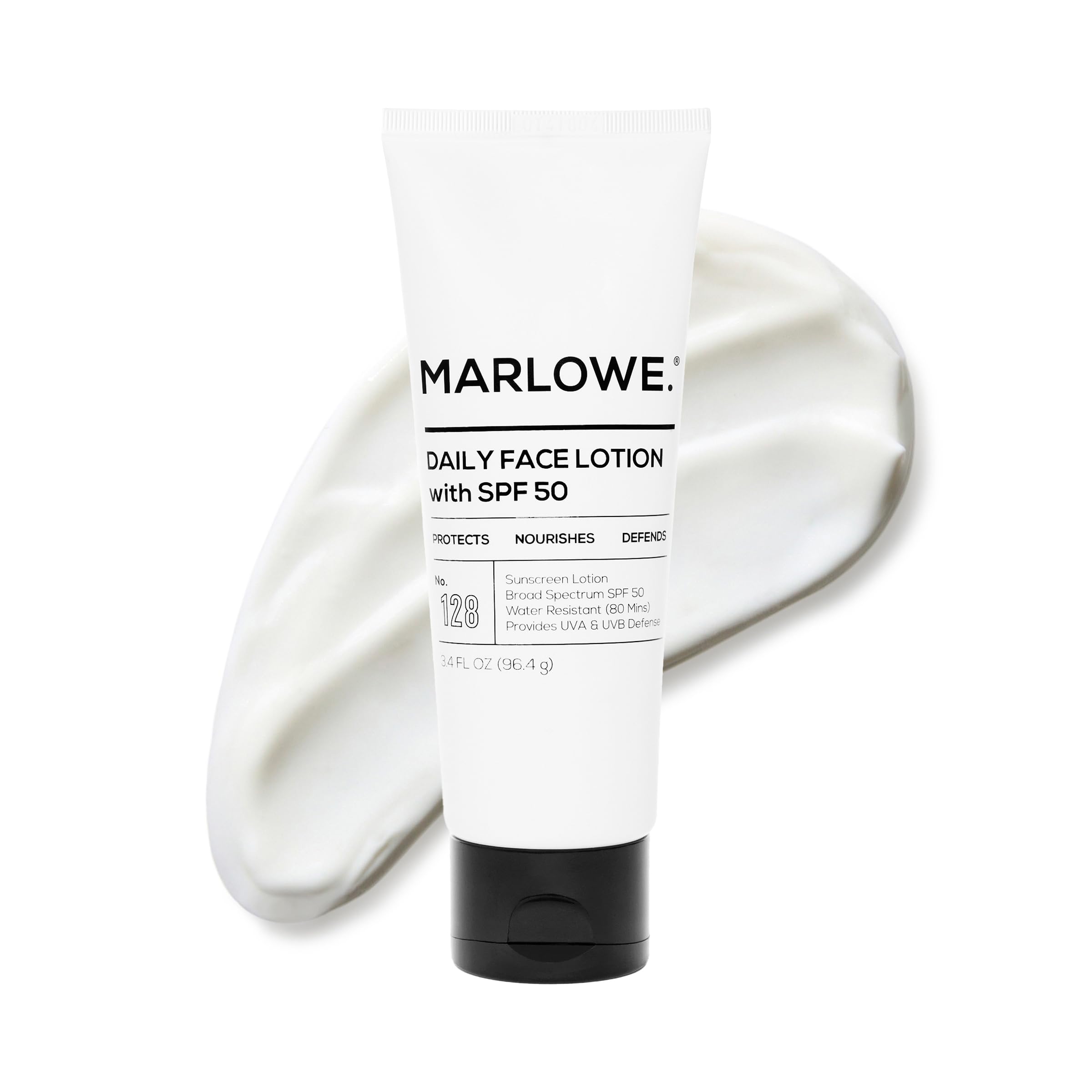 The MARLOWE. Man: Men need skin care too, but it doesn't have to be complicated. We believe that life is complicated enough. Looking good and feeling amazing shouldn't have to be. MARLOWE. engineers products that work as hard as you do. Purposeful, Clean Products: MARLOWE. products are vegan and contain a blend of natural and synthetic fragrances. Formulated without parabens, phthalates, gluten, SLS SLES. Never tested on animals. Made in the USA with globally sourced ingredients. HYDRATING SKIN CARE FOR MEN: This travel size face moisturizer locks in hydration, providing natural moisturizing benefits to cleansed facial skin. Formulated with Vitamin A Acetate to help fight free radicals, it absorbs fast and is perfect for all skin tones with no white cast. EXPERIENCE THE MARLOWE. DIFFERENCE: Our non-comedogenic, oil-free mens face lotion with SPF 50 sunscreen is crafted with aloe vera and shea butter to lock in in moisture and help soothe skin without a greasy after-feel. Water and sweat resistant for 80 mins. PROTECTS, NOURISHES, DEFENDS: MARLOWE. SPF 50 mens face lotion is a water and sweat resistant face moisturizer that provides broad spectrum UVA UVB protection. This face lotion for men is lightweight and easy to rub in. Use daily.