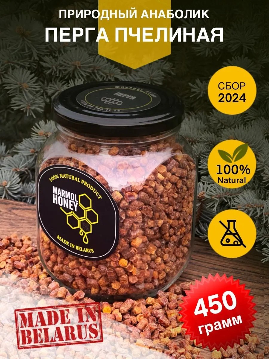 Перга от Marmol Honey — это натуральный продукт, произведённый в экологически чистых условиях Беларуси, который дарит вам здоровье и энергию. Каждый грамм этого чудесного пчелиного продукта сохраняет свою пользу благодаря ручному сбору и внимательному отношению к процессу.