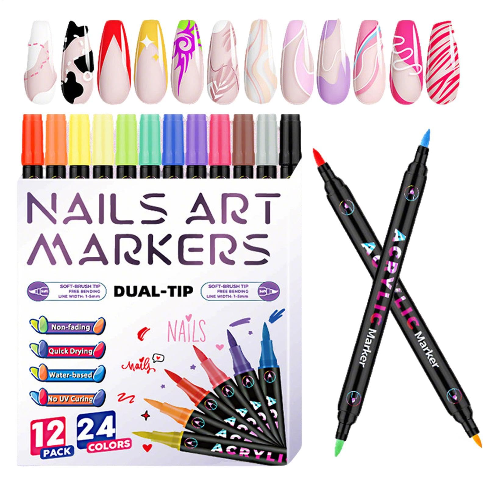 Marqueurs Vernis à Ongles, 12 Pièces Double Pointe Décorations Manucure, Stylos Dessin Ongles, Pour Usage Maison Intérieur Voyage Extérieur Dortoir Scolaire