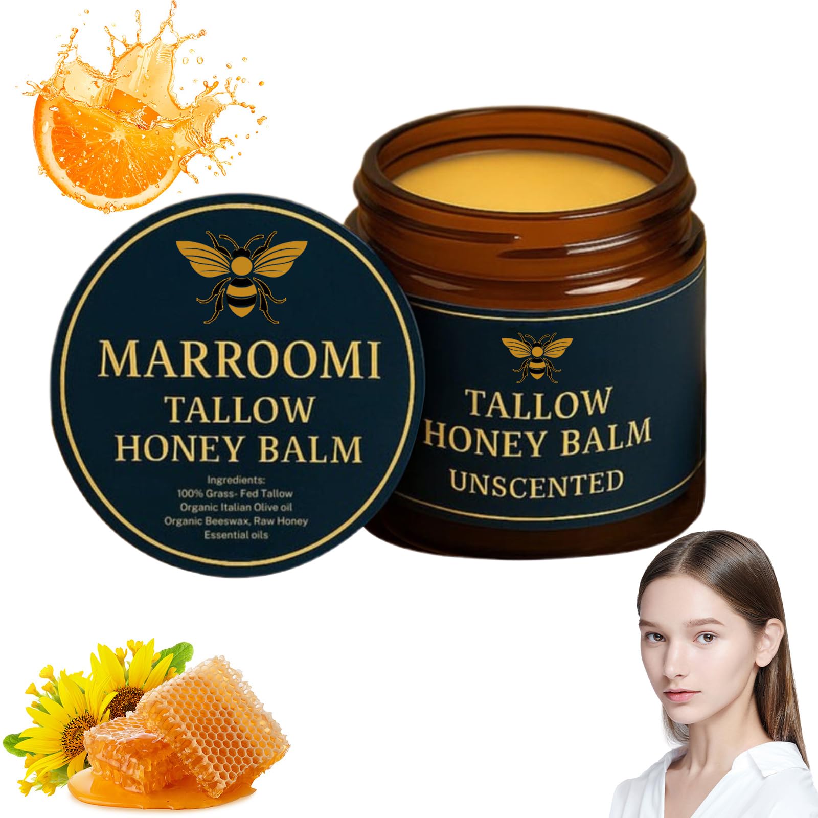 ✓ RISK-FREE PROMISE - We put our money where our SKIN is. This is the only skin cream that we use on our skin. If you're not completely satisfied, we'll refund your entire order - no questions asked. ✓ PERFECT FOR SENSITIVE SKIN - If you have sensitive skin, dry skin, eczema, or rosacea, this is for you! We purposely made this with ZERO essential oils or fragrances, It's scent free!. ✓ FACE AND BODY CARE - Marroomi beef tallow honey balm is an all-purpose skin balm that can be used as a face cream, body cream, foot cream and hand cream, as well as as a lip balm. ✓ MOTHER NATURE'S ULTIMATE MOISTURIZER - Our Marroomi beef tallow for skin is filled to the brim with skin-loving ingredients like Vitamins D, E, Choline, and fatty acids that will nourish your skin better than any chemical cocktail on the market. ✓ INSANELY SATISFYING WHIPPED TEXTURE - Our Marroomi Tallow Honey Balm is whipped into a light airy texture that is dangerously satisfying to spread on your skin. Nourish your skin, improve dry, rough skin, skin 0 burden, sensitive skin can also be used with confidence.