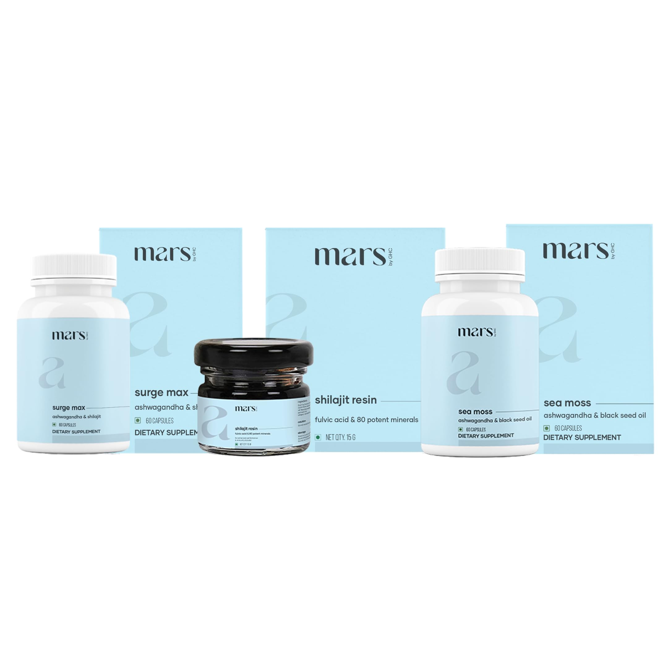 Mars by GHC Performance Plus Combo | Surge Max Shilajit Resin Black Seed & Sea Moss Capsules | Overall Wellbeing Combo