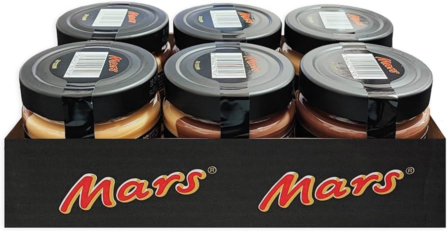: Discover the irresistible taste of Mars Duo Cream, now available in a pack of six 200g tubs. This delicious two-tone cream combines the classic flavor of Mars milk chocolate with a delicious layer of caramel, recreating the iconic snack experience in a spreadable format. Perfect for spreading on toast for a special breakfast, as a topping for homemade cakes, or simply enjoying by the spoonful. The creamy, velvety texture ensures optimal spreadability, while the convenient tub with a resealable lid keeps the product fresh for longer. Ideal for chocolate lovers who want to explore new ways to enjoy the unmistakable taste of Mars. A must-have addition to every chocolate lover's pantry. Ingredients: Duo Cream with milk chocolate and caramel flavor. Ingredients: sugar, vegetable oils (rapeseed, palm). Milk chocolate (5 ), sugar, cocoa butter, skimmed milk powder, cocoa mass, lactose (milk), milk proteins (milk), palm fat, lactose powder (milk), emulsifier (lecithins (soy)), vanilla extract, maltodextrin, paprika extract, hazelnuts. May contain other tree nuts. Milk, fat-reduced cocoa powder, anhydrous butter powder, emulsifier (lecithin), salt, flavorings. store in a cool, dry place. Once opened, consume within 8 weeks. P.when('A').execute(function(A) { A.on('a:expander:toggle_description:toggle:collapse', function(data) { window.scroll(0, data.expander. expander[0].offsetTop-100) }) }) Instructions for use: Creamy and delicious, you can spread it on bread, pancakes. you'll love it! Safety warning: Best before: see lid. store in a dry place. Do not refrigerate. See moreStorage: Resealable jars with black lids to keep the product fresh longer. Versatility: Excellent spread on bread, pancakes, waffles, or as an ingredient in homemade cakes. Convenient size: Multipack ideal for families, perfect for the pantry, or as a gift for chocolate lovers. Authentic flavor: Delicious two-tone cream that recreates the iconic taste of the Mars bar with layers of caramel and milk chocolate. Contents: Pack of 6 jars of Mars Milk Chocolate and Caramel Spread, 200g each.Description du produit Découvrez le goût irrésistible de la crème à tartiner Mars, maintenant disponible dans un lot de 6 pots de 200 g chacun. Cette délicieuse crème bicolore combine la saveur classique du chocolat au lait Mars avec une délicieuse couche de caramel, en recréant l'expérience de l'emblématique snack au format tartinable. Parfait à étaler sur le pain pour un petit-déjeuner spécial, comme garniture pour gâteaux faits maison ou tout simplement à déguster à la cuillère. La texture crémeuse et veloutée garantit une tartinabilité optimale, tandis que le pot pratique avec bouchon refermable maintient le produit frais plus longtemps. Idéal pour les amateurs de chocolat qui souhaitent explorer de nouvelles façons de savourer le goût inimitable de Mars. Un ajout indispensable au garde-manger de chaque gourmand. Ingrédients Duo Cream au goût de chocolat au lait et caramel. Ingrédients : sucre, huiles végétales (colza, palme). Chocolat au lait (5 ), sucre, beurre de cacao, lait écrémé en poudre, masse de cacao, lactose (lait), protéines de lait (lait), graisse de palme, lactosum en poudre (lait), émulsifiant (lécithines (soja)), extrait de vanille, maltodextrine, extrait de paprika, noisettes. Peut contenir d'autres fruits à coquille. Lait, cacao maigre en poudre, beurre anhydre en poudre, émulsifiant (lécitine), sel, arômes. Conserver dans un endroit frais et sec. Une fois ouvert, consommer dans les 8 semaines. P.when('A').execute(function(A) { A.on('a:expander:toggle_description:toggle:collapse', function(data) { window.scroll(0, data.expander. expander[0].offsetTop-100) }) }) Mode d'emploi Crémeuse et délicieuse, vous pouvez l'étaler sur le pain, les crêpes. elle vous séduira ! Avertissement De Sûreté A consommer de préférence entre : voir couvercle. Conserver dans un endroit sec. Ne pas réfrigérer. Voir plusConservation : pots refermables avec couvercle noir pour conserver la fraîcheur du produit plus longtemps. Polyvalence : excellente à étaler sur du pain, des crêpes, des gaufres ou comme ingrédient pour les gâteaux faits maison. Format pratique : lot multiple idéal pour les familles, parfait pour le garde-manger ou comme cadeau pour les amateurs de chocolat. Saveur authentique : délicieuse crème bicolore qui recrée le goût emblématique de la barre Mars avec couches de caramel et chocolat au lait. Contenu : lot de 6 pots de crème à tartiner Mars au chocolat au lait et caramel, 200 g chacun.Mars Crème Spandable, Chocolat au Lait et Caramel, Lot de 6, 200 g pour Pot