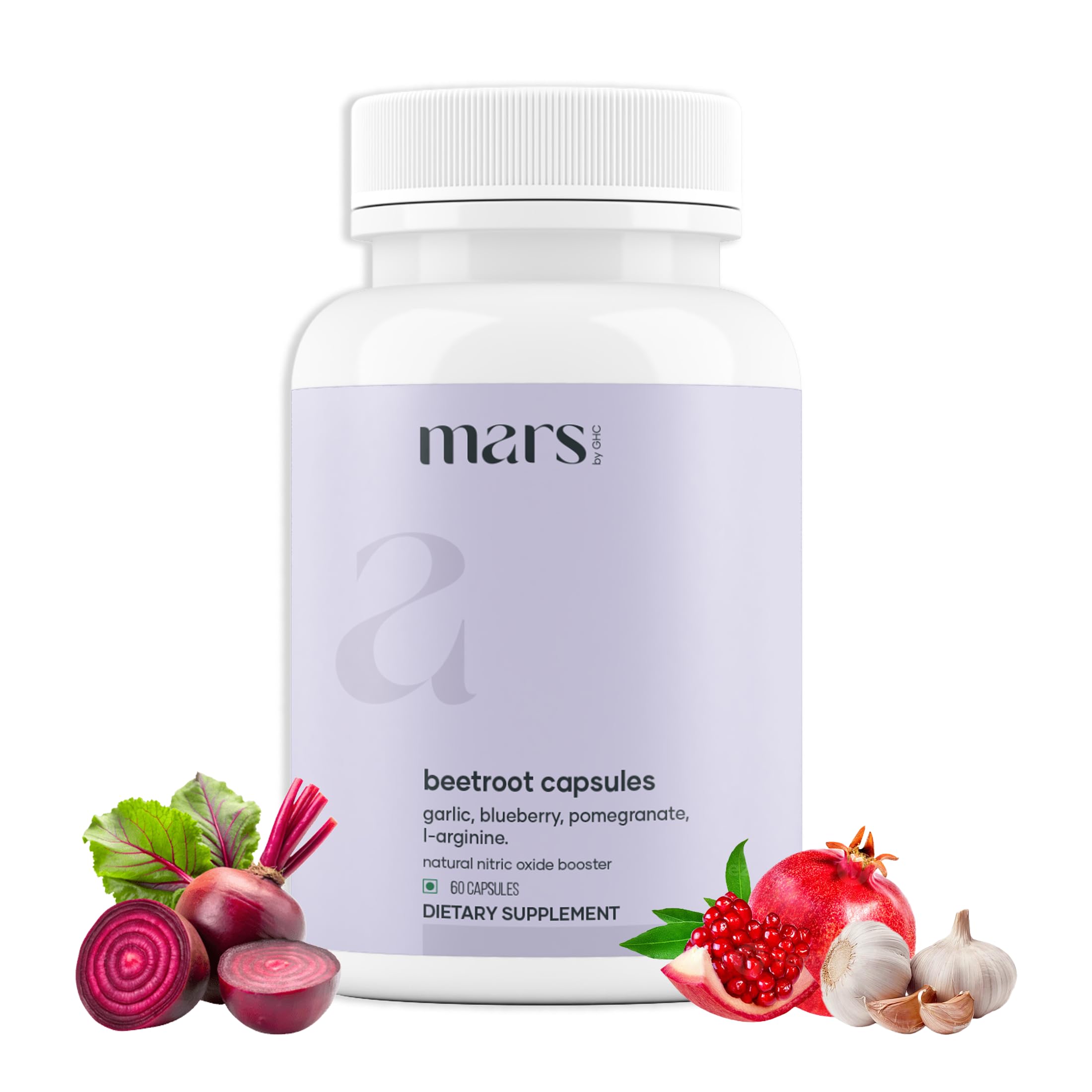 MarsbyGHC Natural Beetroot Capsules | with Garlic Blueberry Pomegranate & L-Arginine | Plant-Based Supplement | Pack of 1