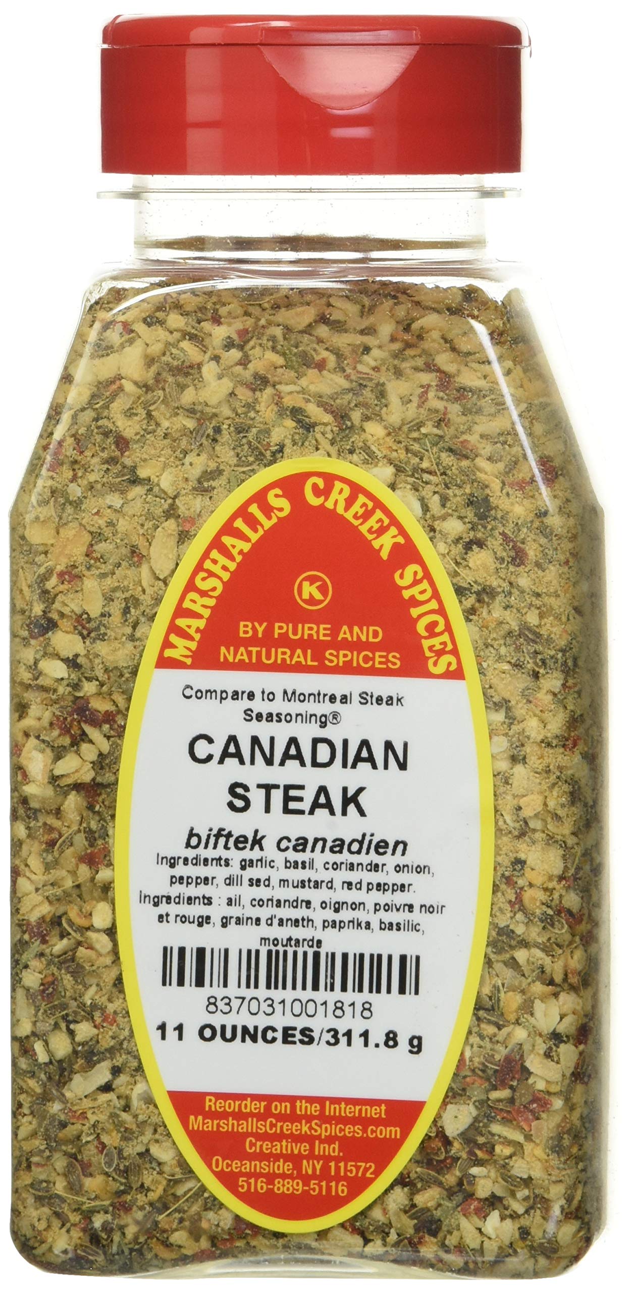 Marshalls Creek Spices is a division of Pure And Natural Spices, where we pack a large selection of spices, herbs and blends, in attractive, clear almost quart size some jars smaller wide mouth jars, with tamper proof seals. We stock over 200 different varieties. All packed weekly, unlike what you buy in the store.Ingredients, garlic, basil, coriander, onion, pepper, mustard, red pepper. All Natural. No MSG. No Fillers. Packed fresh weekly.