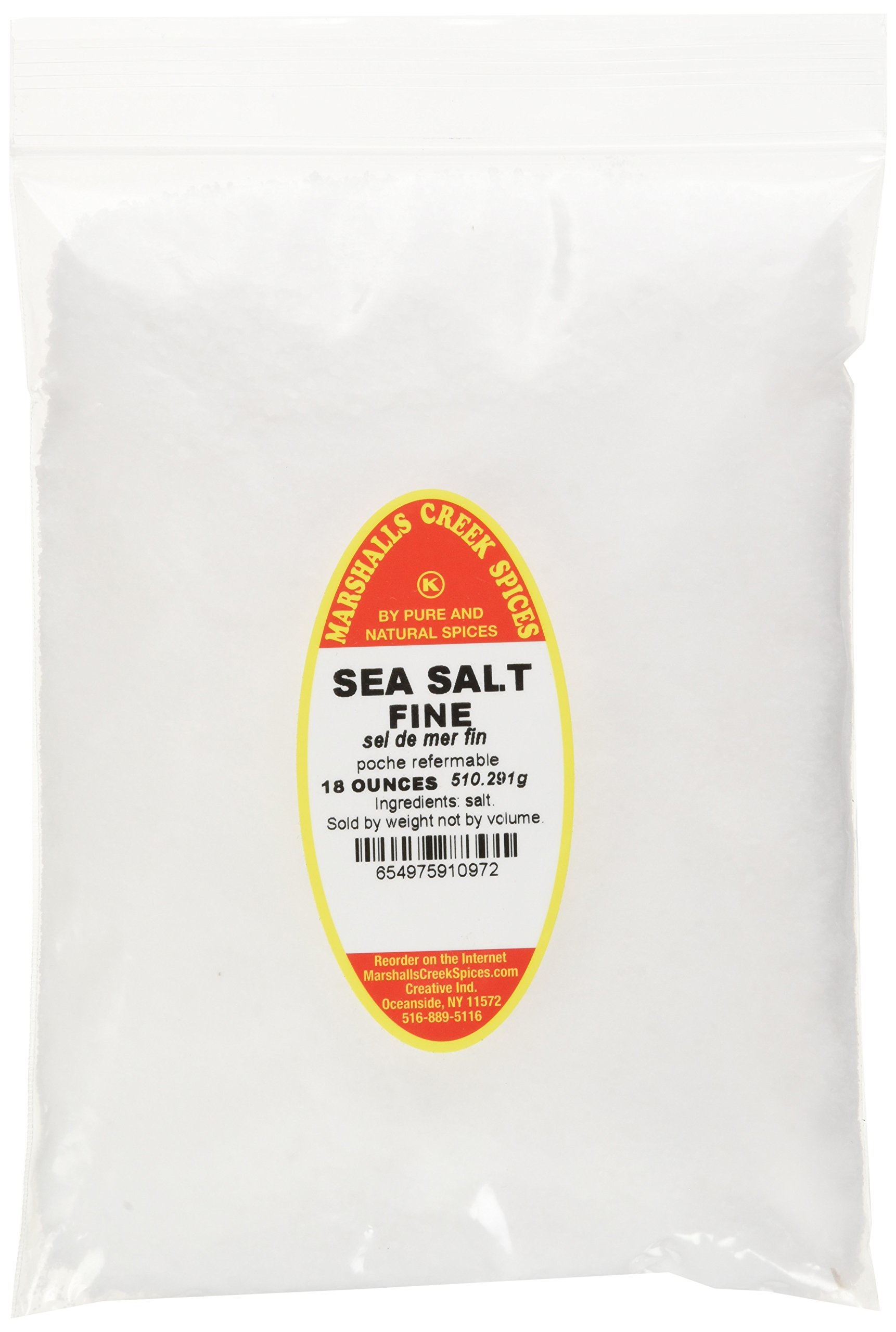 18 ounce refill of Fine Sea Salt Ingredients: salt.Kosher Certified. All Natural. No MSG. No Fillers. Marshalls Creek Spices buys in small quantities and packs weekly providing the freshest spices possible. Fresher spices means more flavor and a longer shelf life.