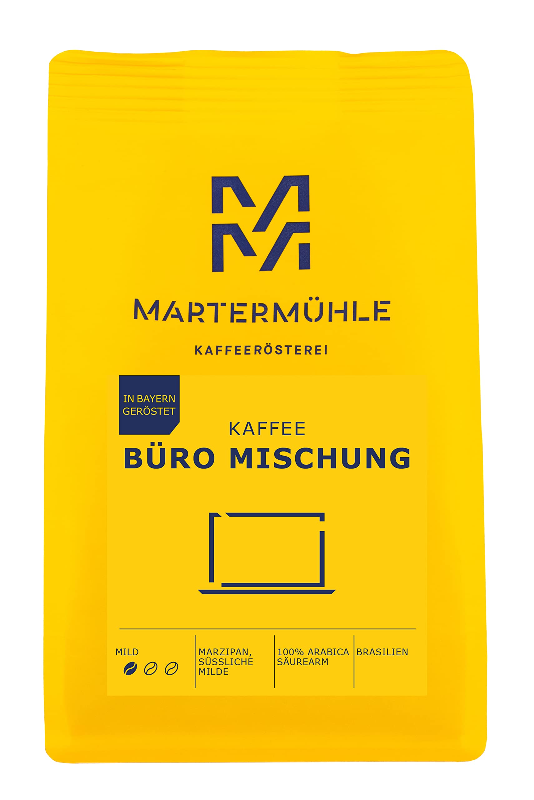 Martermühle Mélange de café et de bureau - Café entier - Grains de café de qualité supérieure du Brésil - Grains de café roulés doux - Grains de café peu d'acide - 100 grains de café arabica - 1 kg