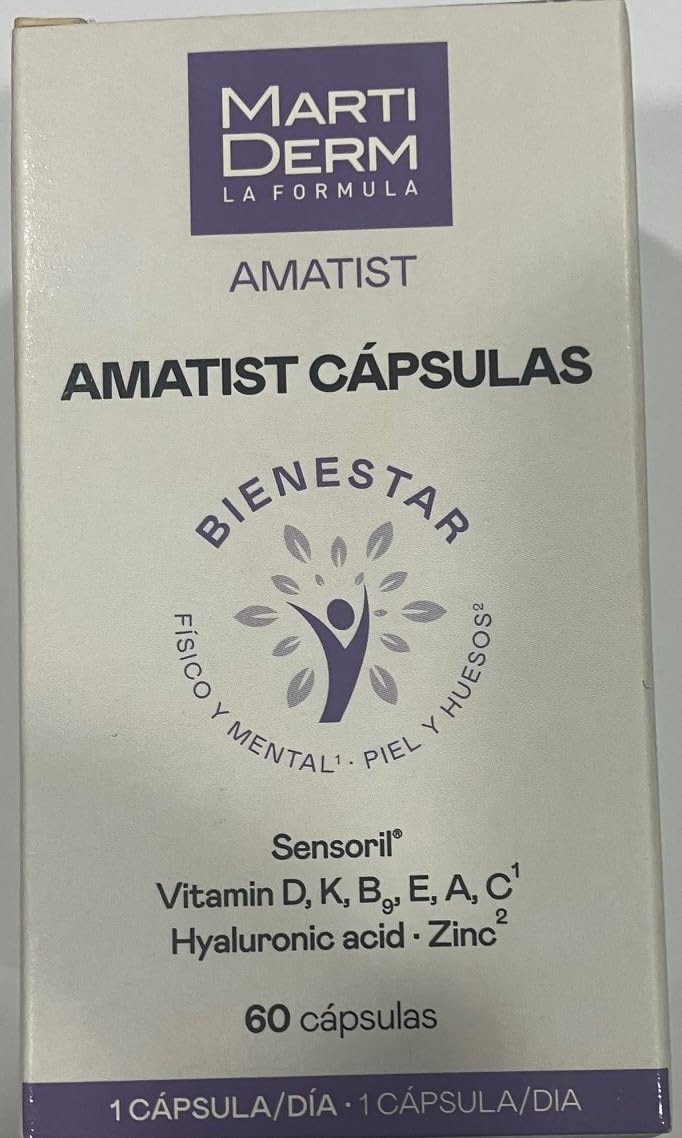 Martiderm Amatist 60 Capsules A dietary supplement formulated to help improve skin health and appearance from within, providing essential nutrients and antioxidants. What are the features of Martiderm Amatist 60 capsules? Martiderm Amatist capsules contain a combination of active ingredients that provide skin benefits, such as: Vitamin C: This is an essential antioxidant that contributes to the protection of cells from oxidative damage and helps with normal collagen formation for normal skin function. Grape Polyphenol Extract: This is rich in antioxidants that help protect the skin from free radicals and oxidative stress, which can contribute to healthier, younger-looking skin. Grape Seed Extract: This is also rich in antioxidants, such as proanthocyanidins, which have protective and restorative properties for the skin. Hyaluronic acid: This is a naturally occurring substance in the skin that helps maintain hydration and firmness. It contributes to improving skin hydration and elasticity, helping to reduce the appearance of fine lines and wrinkles. Who is this product for? Suitable for adults. How do I take Martiderm Amatist 60 capsules? It is taken orally, usually one capsule daily, preferably with breakfast. It is recommended to follow the manufacturer's instructions for the correct dosage and method of use.