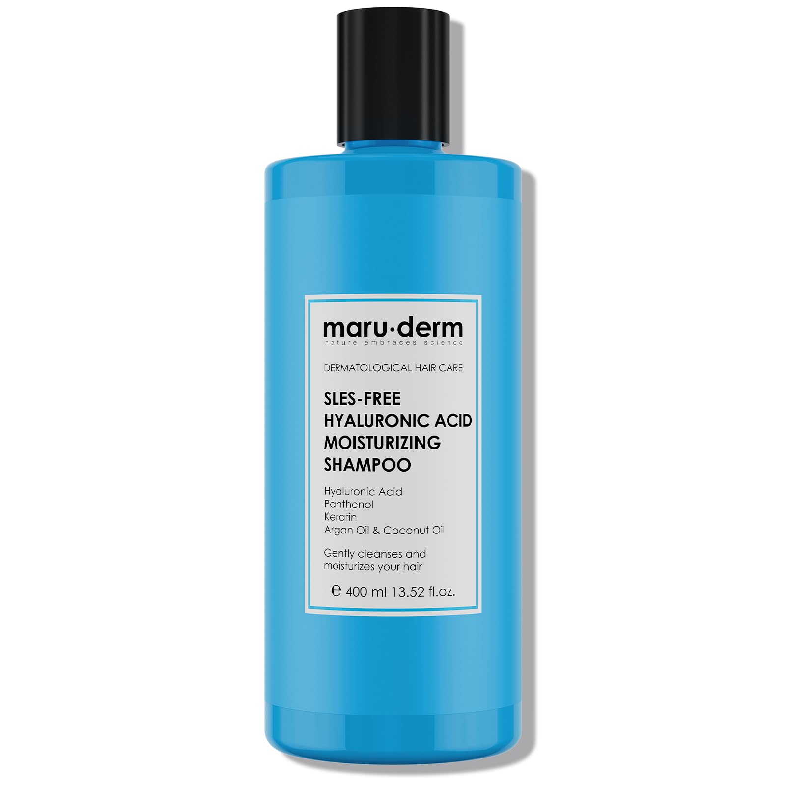 Give your hair intense hydration with the SLES-Free Hyaluronic Acid Moisturizing Shampoo. Its gentle formula, free of harsh sulfates, deeply cleanses while respecting the scalp. Enriched with hyaluronic acid, an active ingredient known for its moisturizing power, it helps retain moisture at the heart of the hair fiber, leaving hair soft, supple, and shiny. Ideal for dry, dull, or dehydrated hair, it provides comfort and vitality with every wash. ✓ Deep Hydration – Hyaluronic acid helps retain water and restore suppleness to hair. ✓ SLES-Free – Gentle cleansing that respects sensitive scalps. ✓ Repairs Nourishes – Helps strengthen the hair fiber and reduce dryness. ✓ Shine Softness – Makes hair brighter and easier to style. ✓ Ideal for Dry Hair – Suitable for weakened or dehydrated hair. With regular use, hair appears softer, hydrated and visibly revitalized. Capacity: 400 ml Made in Türkiye INGREDIENTS Aqua, Disodium Laureth Sulfosuccinate, Glycerin, Cocamidopropyl Betaine, PEG-7 Glyceryl Cocoate, Aloe Barbadensis Leaf Juice, Panthenol, Sodium Hyaluronate, Argania Spinosa Kernel Oil, Cocos Nucifera Oil, Hydrolyzed Keratin, Butyrospermum Parkii Butter, Tocopheryl Acetate, Trideceth-5, Prunus Amygdalus Dulcis Oil, Sodium PCA, Sodium Lactate, Laureth-9, Arginine, Aspartic Acid, PCA, Glycine, Alanine, Serine, Valine, Proline, Threonine, Isoleucine, Sodium Hydroxide, Histidine, Phenylalanine, Citric Acid, Parfum, Sodium Benzoate, Ethylhexylglycerin, Potassium Sorbate, Butylene Glycol, Phenoxyethanol, Amodimethicone, Tetrasodium EDTA. SAFETY WARNING For external use only. Avoid contact with eyes if contact occurs, rinse immediately and thoroughly with clean water. Do not use on an irritated, damaged, or broken scalp. Discontinue use if persistent irritation occurs. Keep out of reach of children. Store at room temperature, away from heat and direct sunlight. See more400ml size – Ideal for daily use. Shine Comfort – Leaves hair soft, shiny, and manageable. Repairs Nourishes – Helps restore hair's suppleness and vitality. Formula with Hyaluronic Acid – Intense hydration for dry and dehydrated hair. Moisturizing Shampoo Without SLES – Gently cleanses without harsh sulfates.Maruderm Shampooing Hydratant à l'Acide Hyaluronique Sans SLES – Soin Doux Nourrissant pour Cheveux Secs et Déshydratés, 400 MLDESCRIPTION DU PRODUIT DESCRIPTION DU PRODUIT Offrez à vos cheveux une hydratation intense avec le Shampooing Hydratant à l'Acide Hyaluronique Sans SLES. Sa formule douce, sans sulfates agressifs, nettoie en profondeur tout en respectant le cuir chevelu. Enrichi en acide hyaluronique, actif reconnu pour son pouvoir hydratant, il aide à retenir l'humidité au cœur de la fibre capillaire, laissant les cheveux doux, souples et brillants. Idéal pour les cheveux secs, ternes ou déshydratés, il apporte confort et vitalité à chaque lavage. ✓ Hydratation Profonde – L'acide hyaluronique aide à retenir l'eau et à redonner souplesse aux cheveux. ✓ Sans SLES – Nettoyage doux qui respecte le cuir chevelu sensible. ✓ Répare Nourrit – Aide à renforcer la fibre capillaire et à réduire la sécheresse. ✓ Brillance Douceur – Rend les cheveux plus lumineux et plus faciles à coiffer. ✓ Idéal pour Cheveux Secs – Convient aux cheveux fragilisés ou déshydratés. Avec une utilisation régulière, les cheveux paraissent plus doux, hydratés et visiblement revitalisés. Contenance : 400 ml Made in Türkiye INGRÉDIENTS Aqua, Disodium Laureth Sulfosuccinate, Glycerin, Cocamidopropyl Betaine, PEG-7 Glyceryl Cocoate, Aloe Barbadensis Leaf Juice, Panthenol, Sodium Hyaluronate, Argania Spinosa Kernel Oil, Cocos Nucifera Oil, Hydrolyzed Keratin, Butyrospermum Parkii Butter, Tocopheryl Acetate, Trideceth-5, Prunus Amygdalus Dulcis Oil, Sodium PCA, Sodium Lactate, Laureth-9, Arginine, Aspartic Acid, PCA, Glycine, Alanine, Serine, Valine, Proline, Threonine, Isoleucine, Sodium Hydroxide, Histidine, Phenylalanine, Citric Acid, Parfum, Sodium Benzoate, Ethylhexylglycerin, Potassium Sorbate, Butylene Glycol, Phenoxyethanol, Amodimethicone, Tetrasodium EDTA. AVERTISSEMENT DE SÉCURITÉ Usage externe uniquement. Éviter tout contact avec les yeux en cas de contact, rincer immédiatement et abondamment à l'eau claire. Ne pas utiliser sur un cuir chevelu irrité, lésé ou présentant des plaies. Cesser l'utilisation en cas d'irritation persistante. Tenir hors de portée des enfants. Conserver à température ambiante, à l'abri de la chaleur et de la lumière directe. Voir plusFormat 400 ml – Idéal pour un usage quotidien. Brillance Confort – Laisse les cheveux doux, lumineux et faciles à coiffer. Répare Nourrit – Aide à restaurer la souplesse et la vitalité capillaire. Formule à l'Acide Hyaluronique – Hydratation intense pour cheveux secs et déshydratés. Shampooing Hydratant Sans SLES – Nettoie en douceur sans sulfates agressifs.