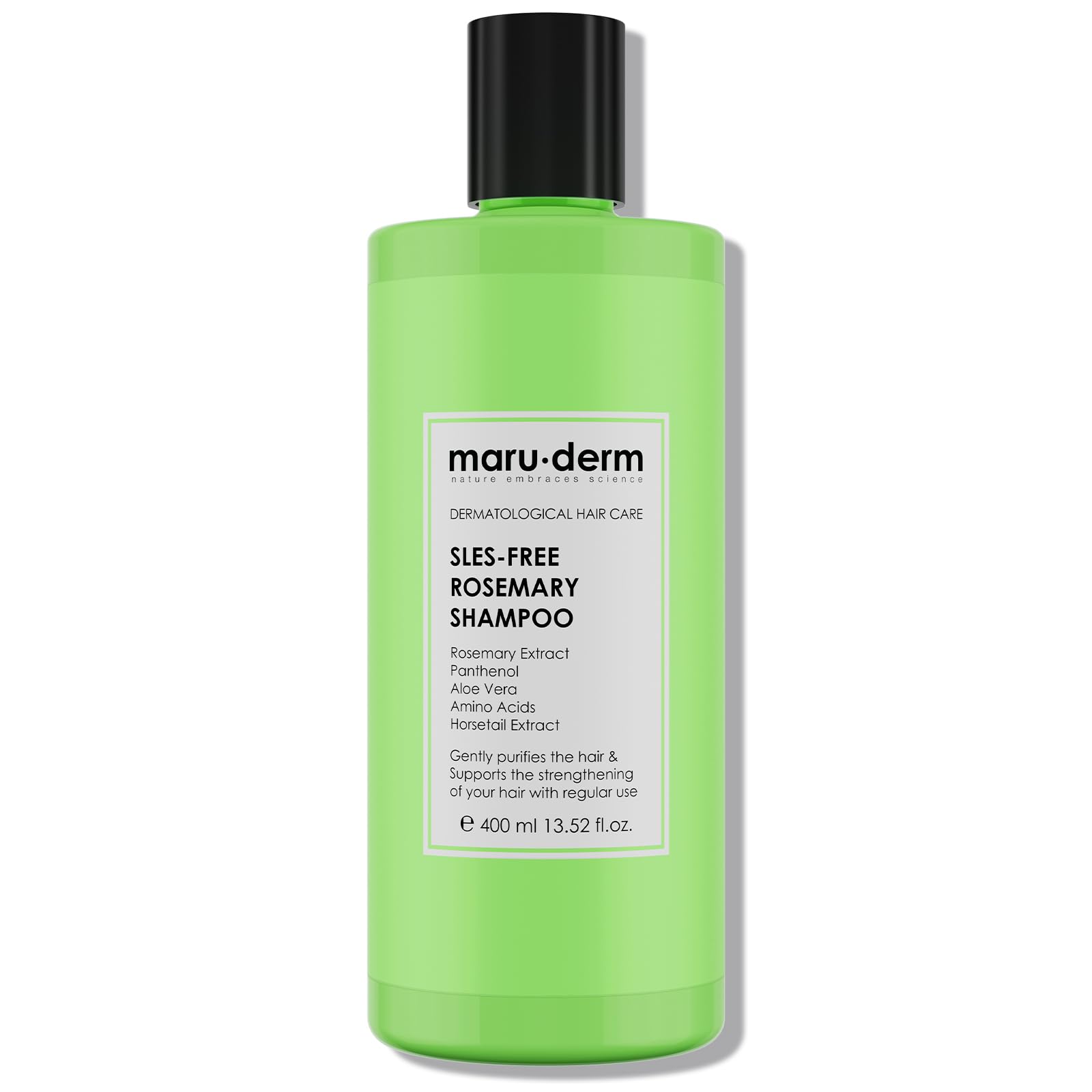 Renew your daily wash with Maruderm Rosemary Shampoo without SLES. The mild cleansing system cleanses thoroughly without drying out, while rosemary water rosemary extract provide a fresh, activated feeling on the scalp. Aloe vera and panthenol (pro-vitamin B5) help hydrate and improve combability hydrolyzed keratin and a light conditioning blend leave hair soft, shiny and airy – without heavy residue. Ideal for frequent use on normal to oily hair. INGREDIENTS Aqua, Disodium Laureth Sulfosuccinate, Rosmarinus Officinalis Flower Leaf Stem Water, Glycerin, Propylene Glycol, Cocamidopropyl Betaine, PEG-7 Glyceryl Cocoate, Aloe Barbadensis Leaf Juice, Panthenol, Rosmarinus Officinalis (Rosemary) Leaf Extract, Cocos Nucifera Oil, Hydrolyzed Keratin, Butyrospermum Parkii Butter, Tocopheryl Acetate, Eucalyptus Globulus Leaf Oil, Prunus Amygdalus Dulcis Oil, Sodium PCA, Sodium Lactate, Equisetum Arvense Leaf Extract, Sorbitol, Arginine, Aspartic Acid, PCA, Glycine, Histidine, Phenylalanine, Alanine, Serine, Valine, Proline, Threonine, Isoleucine, Citric Acid, Trideceth-5, Phenoxyethanol, Butylene Glycol, Ethylhexylglycerin, Laureth-9, Potassium Sorbate, Sodium Hydroxide, Amodimethicone, Sodium Benzoate, Parfum, Tetrasodium EDTA. INSTRUCTIONS FOR USE Wet the hair completely. Apply a small amount to the scalp, massage for approx. 60 seconds, work through the lengths and rinse. Repeat if necessary. Follow with conditioner. SAFETY WARNING For external use only. Avoid direct contact with the eyes in case of contact, rinse thoroughly with water. Perform a patch test before first use. Discontinue use if irritation occurs. Keep out of reach of children. See moreFor daily use: light, non-weighting result – ideal for normal to oily hair and frequent washing. Moisturizing comfort: aloe, panthenol and humectants (glycerin, sorbitol, NMF components) help retain moisture without weighing down. Softness shine: hydrolyzed keratin light conditioners (including PEG-7 Glyceryl Cocoate) polish the hair fiber for natural shine. Refreshing Rosemary: Rosemary water extract leave a clean, energized feeling on the scalp. Without SLES, gentle cleansing: effectively removes sebum and styling residues without stripping the hair – for softness and easy combability.Maruderm Rozemarijnshampoo zonder SLES – Zachte zuiverende reiniging, stimuleert de hoofdhuid en revitaliseert het haar, 400 ML Vernieuw je dagelijkse wasbeurt met Maruderm Rozemarijnshampoo zonder SLES. Het milde reinigingssysteem reinigt grondig zonder uit te drogen, terwijl rozemarijnwater rozemarijnextract zorgen voor een fris, geactiveerd gevoel op de hoofdhuid. Aloë vera en panthenol (pro-vitamine B5) helpen hydrateren en de doorkambaarheid te verbeteren gehydrolyseerde keratine en een lichte conditionerende mix laten het haar zacht, glanzend en luchtig achter – zonder zwaar residu. Ideaal voor frequent gebruik op normaal tot vet neigend haar. INGREDIËNTEN Aqua, Disodium Laureth Sulfosuccinate, Rosmarinus Officinalis Flower Leaf Stem Water, Glycerin, Propylene Glycol, Cocamidopropyl Betaine, PEG-7 Glyceryl Cocoate, Aloe Barbadensis Leaf Juice, Panthenol, Rosmarinus Officinalis (Rosemary) Leaf Extract, Cocos Nucifera Oil, Hydrolyzed Keratin, Butyrospermum Parkii Butter, Tocopheryl Acetate, Eucalyptus Globulus Leaf Oil, Prunus Amygdalus Dulcis Oil, Sodium PCA, Sodium Lactate, Equisetum Arvense Leaf Extract, Sorbitol, Arginine, Aspartic Acid, PCA, Glycine, Histidine, Phenylalanine, Alanine, Serine, Valine, Proline, Threonine, Isoleucine, Citric Acid, Trideceth-5, Phenoxyethanol, Butylene Glycol, Ethylhexylglycerin, Laureth-9, Potassium Sorbate, Sodium Hydroxide, Amodimethicone, Sodium Benzoate, Parfum, Tetrasodium EDTA. GEBRUIKSAANWIJZING Maak het haar volledig nat. Breng een kleine hoeveelheid aan op de hoofdhuid, masseer ca. 60 seconden, werk door tot in de lengten en spoel uit. Indien nodig herhalen. Vervolg met conditioner. VEILIGHEIDSWAARSCHUWING Uitsluitend voor uitwendig gebruik. Vermijd direct contact met de ogen bij contact grondig met water uitspoelen. Voer vóór eerste gebruik een patchtest uit. Stop het gebruik bij irritatie. Buiten bereik van kinderen houden. Meer bekijkenVoor dagelijks gebruik: licht, niet-verzwarend resultaat – ideaal voor normaal tot vet neigend haar en veelvuldig wassen. Hydraterend comfort: aloë, panthenol en humectanten (glycerine, sorbitol, NMF-componenten) helpen vocht vast te houden zonder te verzwaren. Zachtheid glans: gehydrolyseerde keratine lichte conditioners (o.a. PEG-7 Glyceryl Cocoate) polijsten de haarvezel voor natuurlijke glans. Verfrissende rozemarijn: rozemarijnwater -extract geven een schoon, geactiveerd gevoel op de hoofdhuid. Zonder SLES, zacht reinigen: verwijdert talg en stylingresten effectief zonder het haar te strippen – voor zachtheid en makkelijke doorkambaarheid.