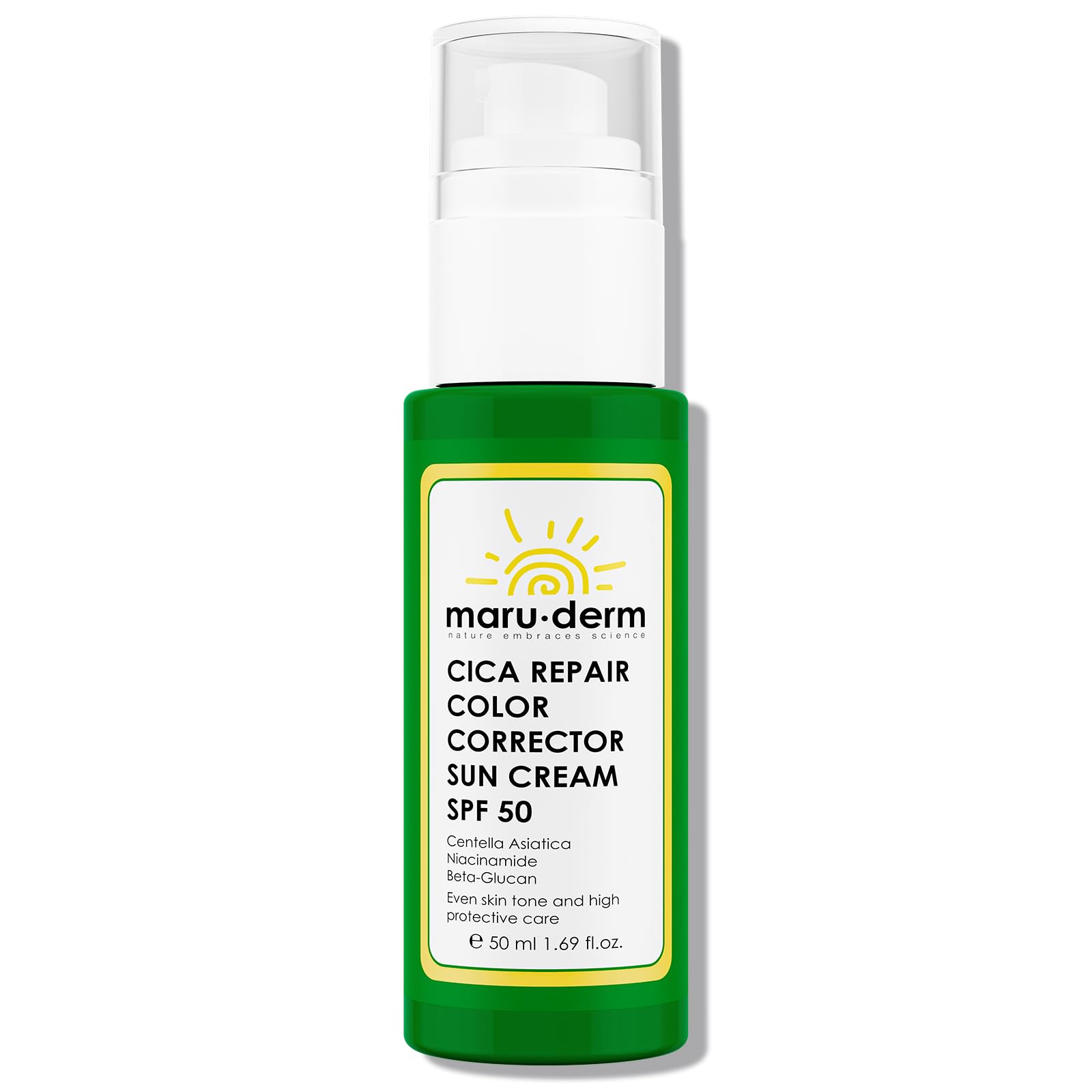 The Maruderm Tinted Corrective Cica Repair Sun Cream SPF 50 combines very high UVA UVB protection with a natural corrective effect. Enriched with Centella Asiatica, this cream helps soothe sensitive skin, reduce redness and strengthen the skin barrier. The light, hydrating formula melts into the skin for a smooth, fresh finish without greess. Thanks to the very high SPF 50 protection, the skin is protected daily against sun damage and harmful environmental factors. Dermatologically tested and suitable for sensitive skin, this color sunscreen combines protection, care and natural coverage in one. Contents: 50 ML – ideal for daily use and easy to carry. INGREDIENTS Aqua (Water), Zinc Oxide, Dimethicone, Centella Asiatica (Gotu Kola) Leaf Extract, Glycerin, Caprylic Capric Triglyceride, Titanium Dioxide, Methylene Bis-Benzotriazolyl Tetramethylbutylphenol, Silica, Ethylhexyl Triazone, Niacinamide, Sodium Chloride, Stearalkonium Hectorite, CI 77891, Panthenol, Trimethylsiloxysilicate, Bis-Ethylhexyloxyphenol Methoxyphenyl Triazine, Diethylamino Hydroxybenzoyl Hexyl Benzoate, Sodium Hyaluronate, Centella Asiatica Extract, Beta-Glucan, Madecassoside, Dimethicone Crosspolymer, Sodium Benzoate, Propylene Carbonate, Potassium Sorbate, Triethoxycaprylylsilane, Polyvinyl Alcohol, Sodium Polyacrylate, Aluminum Hydroxide, CI 77491,CI 77499, CI 77492, CI 77288. INSTRUCTIONS FOR USE Use 30 minutes before sun exposure, use 2-3 finger widths on the face and repeat every 2 hours or after swimming sweating. Use in combination with other sun protection measures. SAFETY WARNING For external use only. Avoid direct contact with the eyes in case of contact, rinse thoroughly with water. Do not apply to damaged or irritated skin. Discontinue use if irritation, persistent redness or unwanted reactions occur and consult a dermatologist. Keep out of reach of children. A patch test is recommended before first use. Store cool and dry, protected from direct sunlight. See moreDermatologically tested – Suitable for sensitive and redness-prone skin ideal as a tinted day cream or make-up base. Daily protection – Defends the skin against harmful UV rays and external influences that cause premature skin aging. Light daily hydration – Silky texture that absorbs quickly without feeling greasy or heavy. With Centella Asiatica – Natural ingredient known for its soothing and restorative properties for sensitive skin. Tinted face sunscreen SPF 50 – Provides very high UVA UVB protection, evens the complexion and reduces redness.Maruderm SPF 50 Getinte Corrigerende Cica Repair Zonnecrème – Hoge UVA UVB Bescherming, Hydraterend Kalmerend met Centella Asiatica – Vermindert Roodheid Egaliseert de Teint, 50 ML De Maruderm Getinte Corrigerende Cica Repair Zonnecrème SPF 50 combineert zeer hoge UVA UVB bescherming met een natuurlijk corrigerend effect. Verrijkt met Centella Asiatica, helpt deze crème de gevoelige huid te kalmeren, roodheid te verminderen en de huidbarrière te versterken. De lichte, hydraterende formule smelt samen met de huid voor een egale, frisse finish zonder vettigheid. Dankzij de zeer hoge SPF 50 bescherming wordt de huid dagelijks beschermd tegen zonneschade en schadelijke omgevingsfactoren. Dermatologisch getest en geschikt voor de gevoelige huid, deze zonnecrème met kleur combineert bescherming, verzorging en een natuurlijke dekking in één. Inhoud: 50 ML – ideaal voor dagelijks gebruik en gemakkelijk mee te nemen. INGREDIËNTEN Aqua (Water), Zinc Oxide, Dimethicone, Centella Asiatica (Gotu Kola) Leaf Extract, Glycerin, Caprylic Capric Triglyceride, Titanium Dioxide, Methylene Bis-Benzotriazolyl Tetramethylbutylphenol, Silica, Ethylhexyl Triazone, Niacinamide, Sodium Chloride, Stearalkonium Hectorite, CI 77891, Panthenol, Trimethylsiloxysilicate, Bis-Ethylhexyloxyphenol Methoxyphenyl Triazine, Diethylamino Hydroxybenzoyl Hexyl Benzoate, Sodium Hyaluronate, Centella Asiatica Extract, Beta-Glucan, Madecassoside, Dimethicone Crosspolymer,Sodium Benzoate, Propylene Carbonate, Potassium Sorbate, Triethoxycaprylylsilane, Polyvinyl Alcohol, Sodium Polyacrylate, Aluminum Hydroxide, CI 77491,CI 77499, CI 77492, CI 77288. GEBRUIKSAANWIJZING Gebruik 30 minuten voor zonsblootstelling, gebruik 2-3 vingerbreedtes voor het gezicht en herhaal elke 2 uur of na zwemmen zweeten. Gebruik in combinatie met andere zonsbeschermingsmaatregelen. VEILIGHEIDSWAARSCHUWING Alleen voor uitwendig gebruik. Vermijd direct contact met de ogen bij contact grondig uitspoelen met water. Niet aanbrengen op beschadigde of geïrriteerde huid. Stop het gebruik bij irritatie, aanhoudende roodheid of ongewenste reacties en raadpleeg een dermatoloog. Buiten bereik van kinderen houden. Een patchtest wordt aanbevolen vóór het eerste gebruik. Koel en droog bewaren, beschermd tegen direct zonlicht. Meer bekijkenDermatologisch getest – Geschikt voor gevoelige en roodheid-gevoelige huid ideaal als getinte dagcrème of make-up basis. Dagelijkse bescherming – Verdedigt de huid tegen schadelijke UV-stralen en externe invloeden die vroegtijdige huidveroudering veroorzaken. Lichte dagelijkse hydratatie – Zijdezachte textuur die snel intrekt zonder vettig of zwaar gevoel. Met Centella Asiatica – Natuurlijk ingrediënt dat bekend staat om zijn kalmerende en herstellende eigenschappen voor de gevoelige huid. Getinte zonnecrème gezicht SPF 50 – Biedt zeer hoge UVA UVB bescherming, egaliseert de teint en vermindert roodheid.