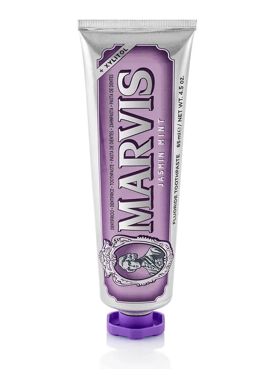 Marvis это фантастическая зубная паста из Флоренции, которая известна более 60 лет. Пасты отличаются уникальной кремообразной текстурой и отличными очищающими свойствами. Входящая в состав целлюлозная смола делает пасту похожей на густые сливки и предотвращает ее высыхание и расслоение, ксилитол защищает зубы от кариеса и укрепляет, а деликатные абразивные вещества бережно удаляют зубной налет и мягко полируют эмаль, не повреждая и не царапая ее. Неожиданное сочетание цветочных нот жасмина и свежей мяты в этой зубной пасте создает ощущение гармонии Средиземноморья. Массовая доля фторида 0.0905% (905 ppm).