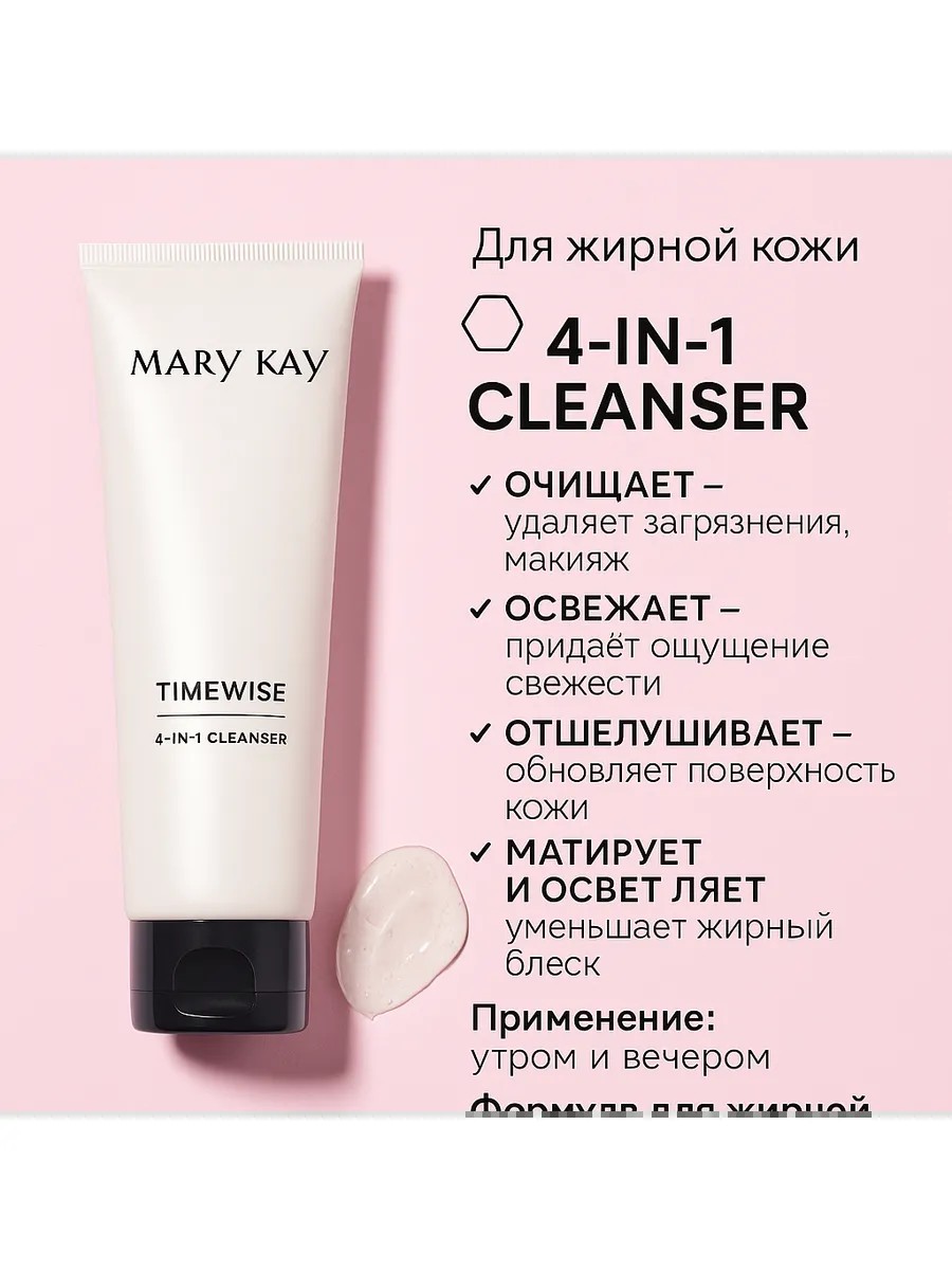 Mary Kay TimeWise 4-in-1 Cleanser (для жирной кожи) — это универсальное средство, которое обеспечивает 4 ключевых действия: