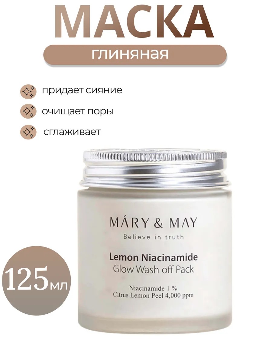 Маска Mary&May Lemon Niacinamide Glow Wash Off Pack очищает, абсорбируя загрязнения из пор, и визуально сужает их, сглаживает рельеф, выравнивает тон и осветляет, не провоцирует стянутости и сухости.