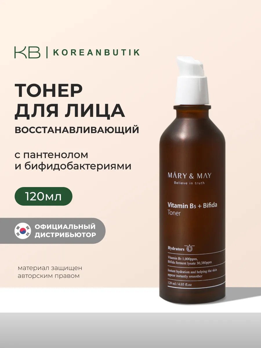 Тонер для лица с бифидобактериями и витамином B5 Vitamin В5+ Bifida Toner Mary&May – это мощное средство для укрепления защитного барьера эпидермиса и борьбы с несовершенствами.