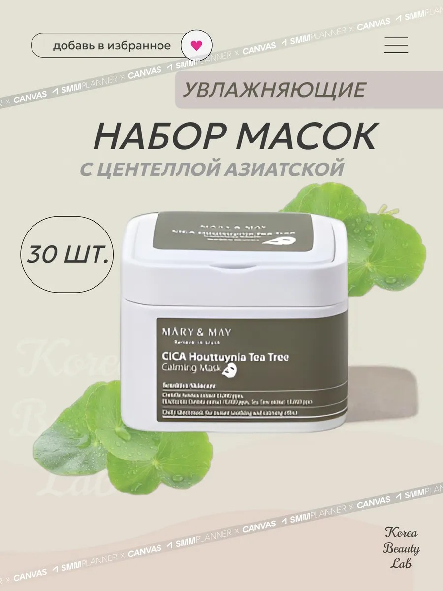 MARY&MAY Успокаивающие маски с центеллой азиатской 30 шт