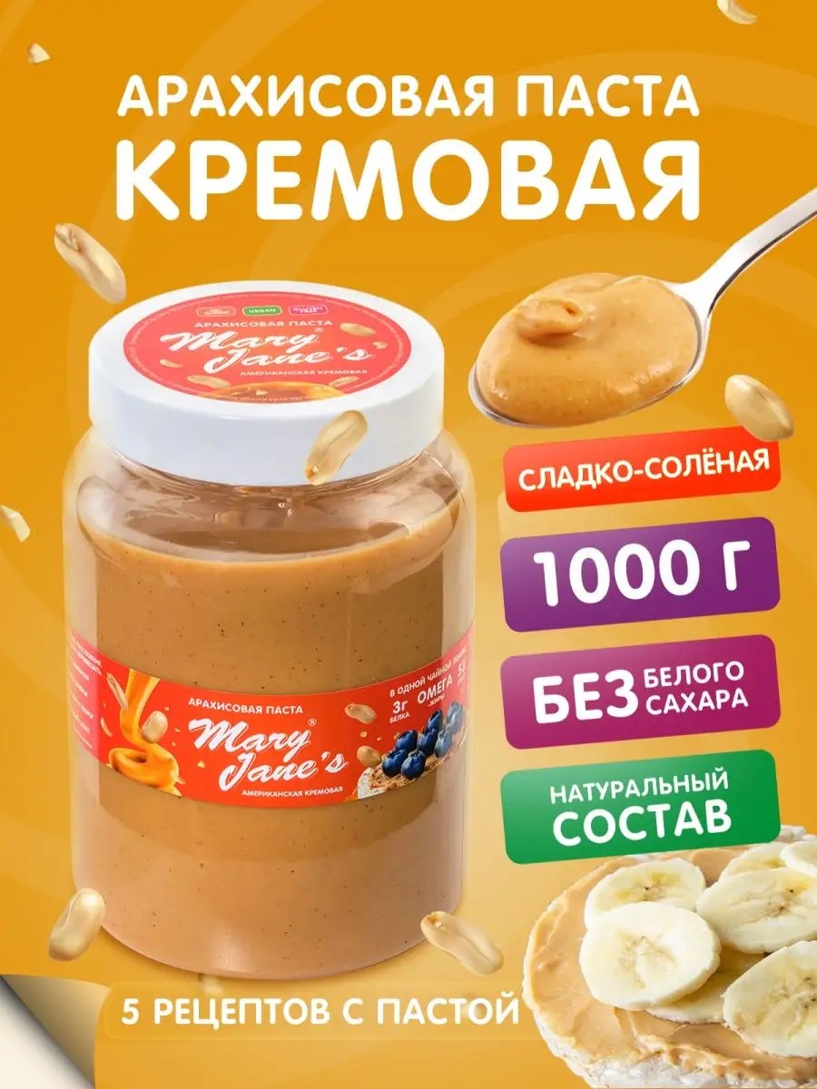 MaryJane's Арахисовая паста кремовая без сахара с солью 1 кг