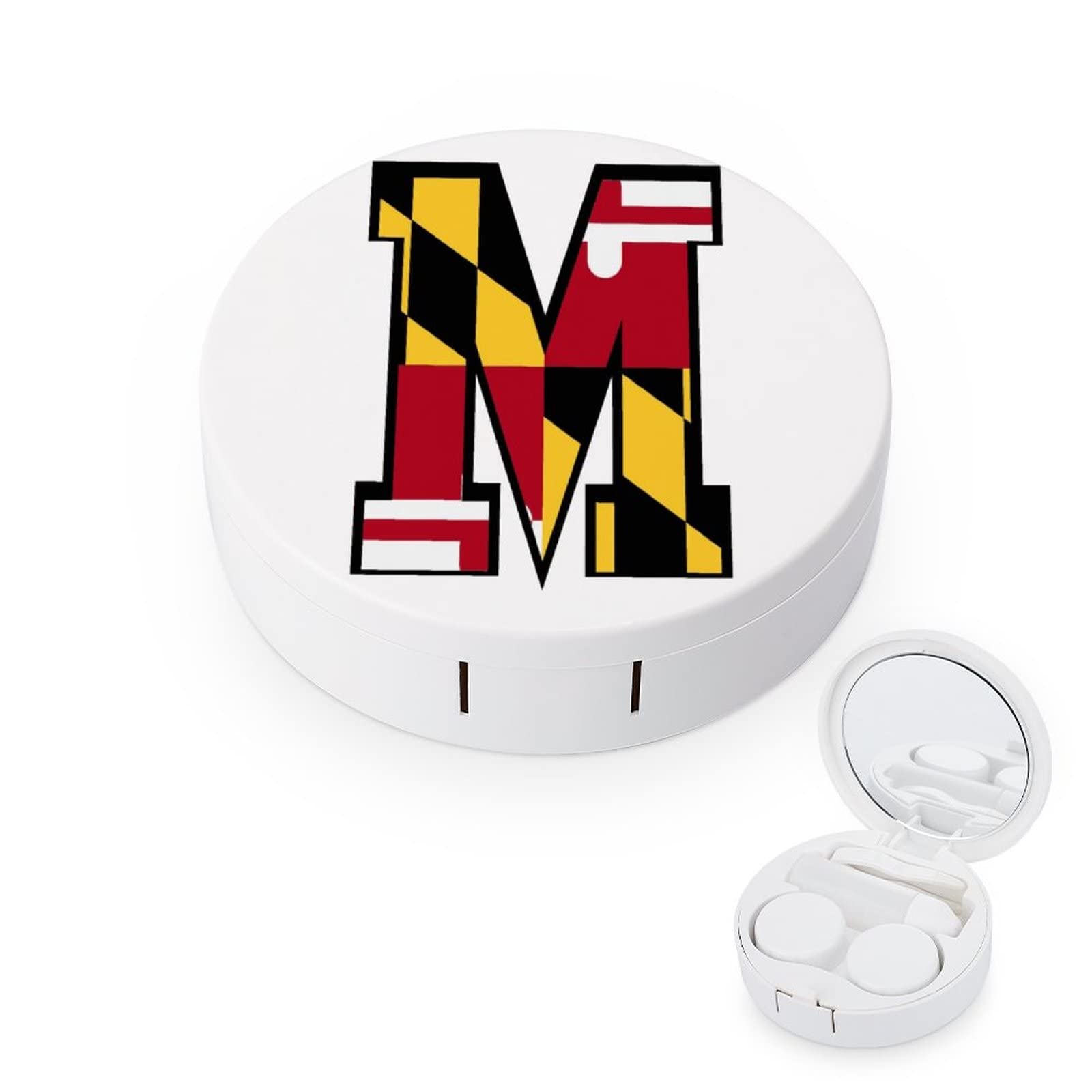 Maryland Flag M Round Case For Contact Lens Kit Storage Box with Mirror Printed