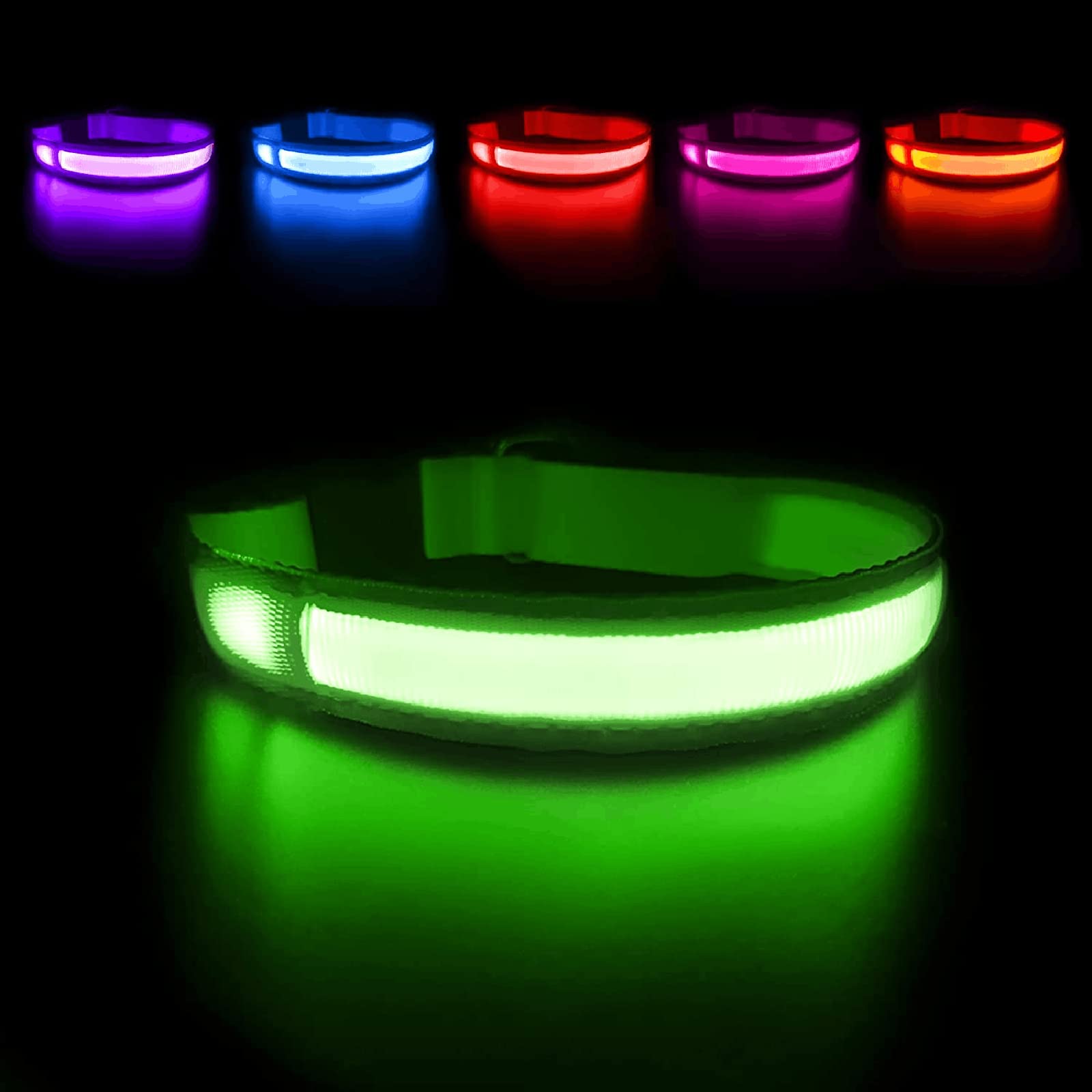 Masbrill dog collar lighting usb charging waterproof LED light neck band for small medium -sized dogs adjustable Safety dog collar with 3 lighting modes - green - S (28-40cm/11-15.7inch) green (TC5200)