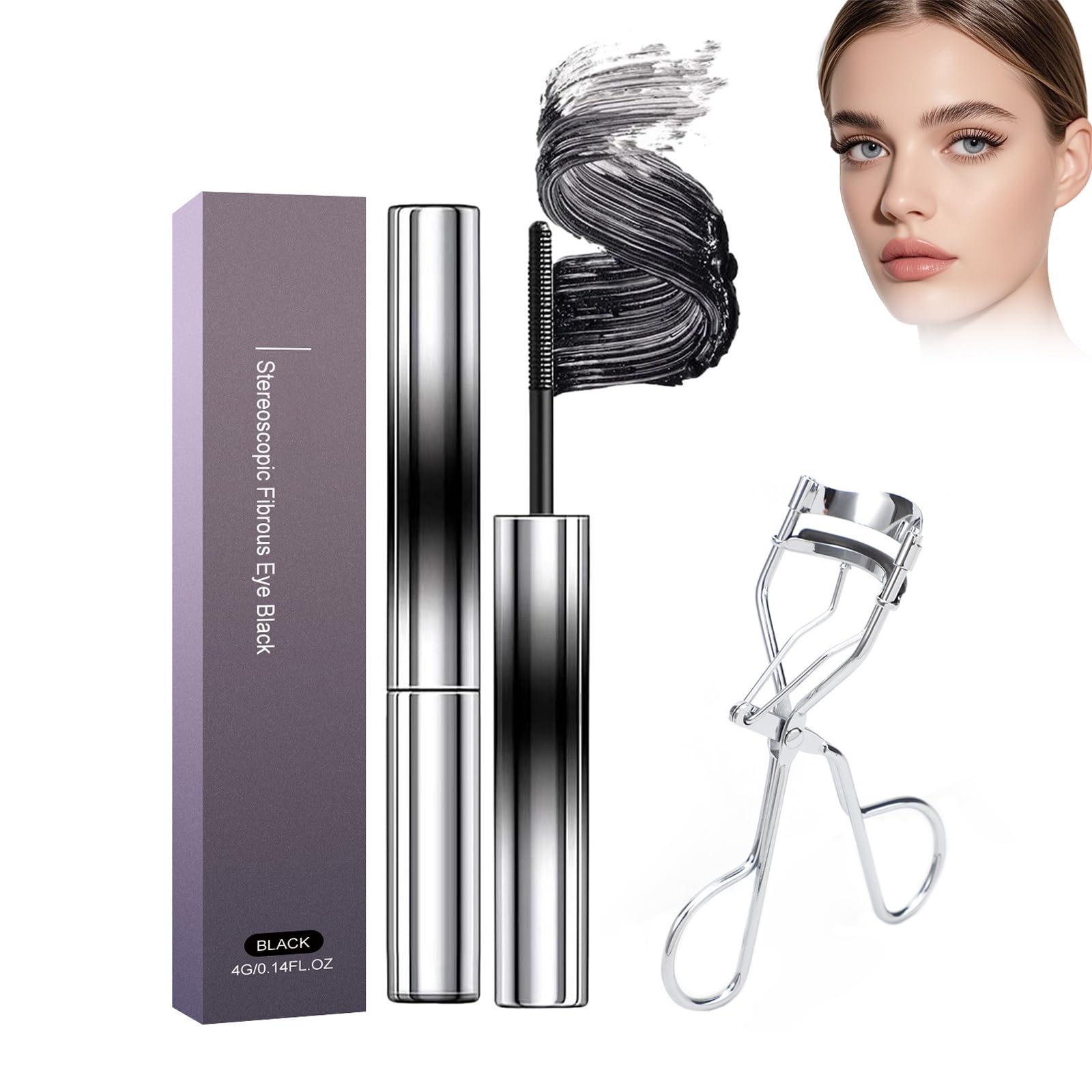 Perfect eye makeup: Get colors for everyday wear or create the ideal look for various occasions: birthday parties, beauty salons, performances, promotional events, proms, and wedding makeup. Easy to use: Featuring a unique brush that effectively captures and thickens each lash, it allows for effortless application, perfect for beginners and professionals alike. Easy removal: Made from natural ingredients, this mascara washes off easily with warm water. Its smudge-proof formula ensures it won't run throughout the day. All-day volume: Our waterproof mascara formula guarantees your lashes maintain their volume despite rain, tears, and perspiration, eliminating the need for constant touch-ups. Set: Includes a mascara and an eyelash curler. The mascara transforms short, sparse lashes into long, voluminous ones! It instantly creates lush, beautiful lashes.