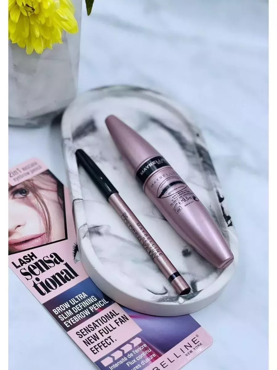 КомплектацияТушь для ресниц сенсационный объем 1 шт.; Карандаш для глаз и бровей 1 шт.