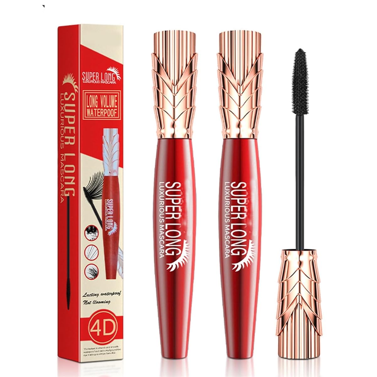Mascara Super Long, Mascara de Maquillage 4d à Tenue Longue Tenue, Mascara Longue durée pour créer des Cils Plus fournis, Mascara imperméable et résistant à la Transpiration (2pièces)