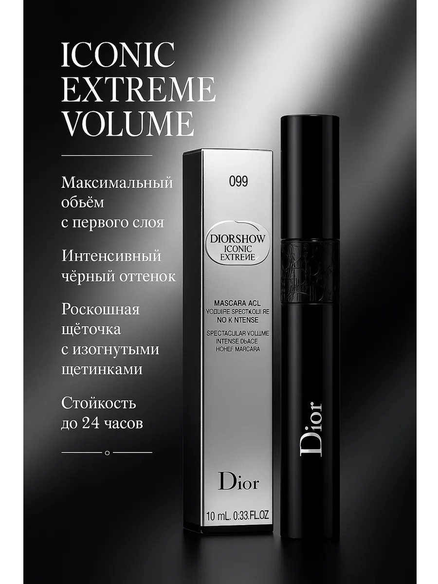 | Полное наименование товара | Тушь для ресниц Dior Diorshow Iconic Extreme 099 черная — объёмная, удлиняющая, водостойкая, профессиональная щёточка, для чувствительных глаз |