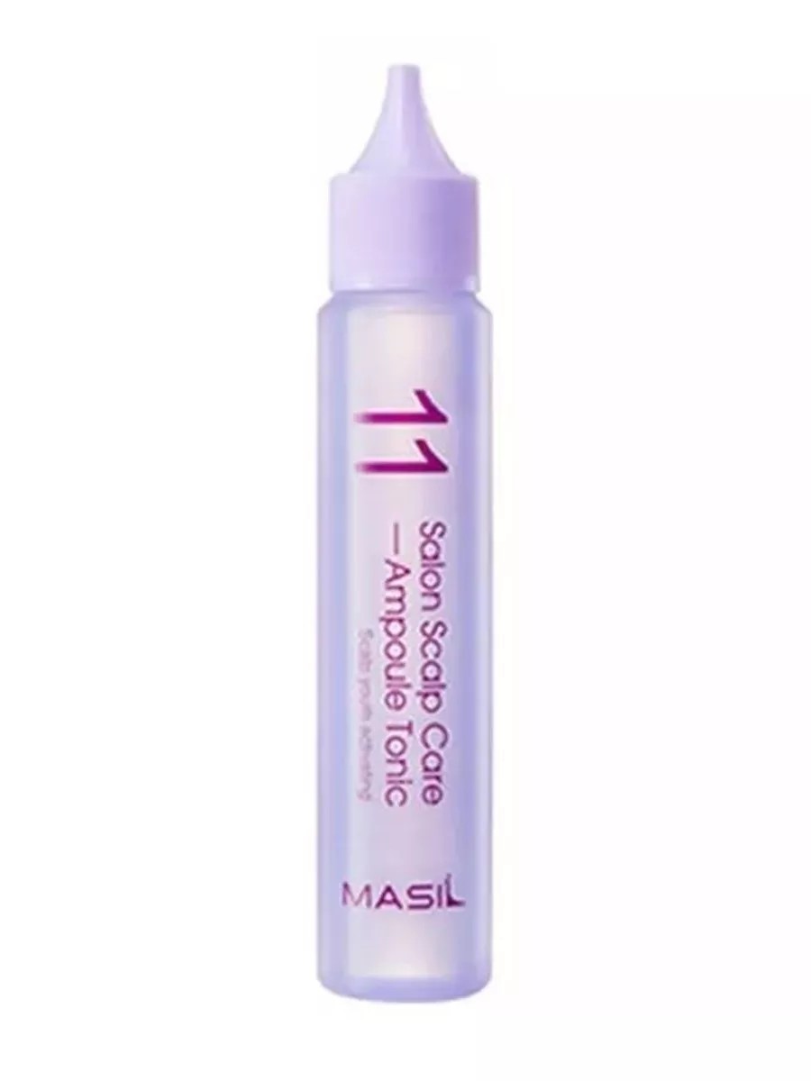 The refreshing Masil 11 Salon Scalp Care Ampoule Tonic soothes irritated scalp, relieves itching, and promotes inflammation healing. It eliminates odor and prolongs hair's freshness and cleanliness. It normalizes sebaceous gland function, reduces oiliness, while intensely moisturizing, combating dryness and flaking. It strengthens hair follicles, promotes growth, and prevents hair loss. This tonic contains a complex of plant extracts that not only heal the scalp but also improve the condition of hair strands, restoring shine, elasticity, and vitality. It adds volume, smoothness, and silkiness. Sophora japonica root extract has an antioxidant effect, restoring and strengthening properties. It stimulates rapid hair growth and effectively combats hair loss. Angelica gigas root extract soothes the scalp and eliminates dryness, reduces itching and strengthens the roots.