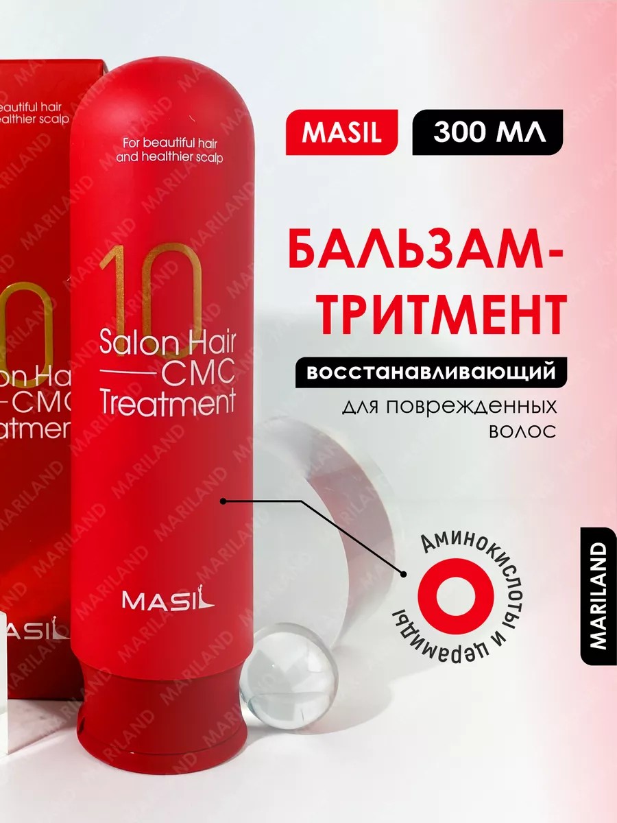 Восстанавливающий бальзам с аминокислотами масил Masil 10 salon hair cmc treatment 300 мл ml глубоко увлажняет волосы, не утяжеляя их, придает блеск, здоровый вид и способствует улучшению роста волос. Увлажняющий тритмент питает волосы, борется от выпадения, обеспечивает гладкость, восстановление и шелковистость.