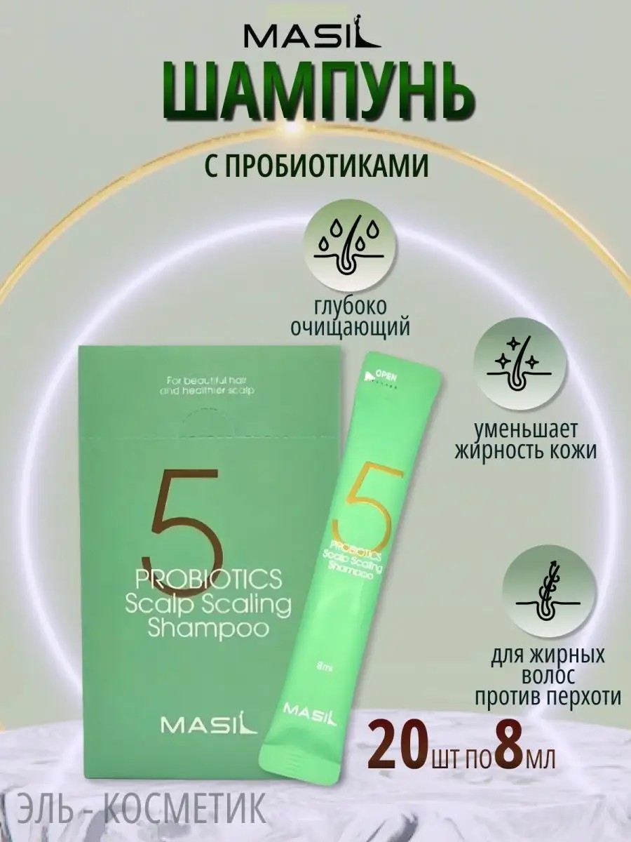 Глубокоочищающий шампунь с пробиотиками Masil 5 Probiotics Scalp Scaling Shampoo тщательно удаляет все виды загрязнений, отшелушивает ороговевшие клетки и нормализует работу сальных желез. Восстанавливает оптимальный водно-липидный баланс, предупреждает появление перхоти и уменьшает жирность кожи. Корейский Шампунь для волос эффективно очищает, улучшает микроциркуляцию и усиливает приток питательных веществ к корням волос. Усиливает защитный слой, снимает неприятные ощущения и зуд, успокаивает раздраженную кожу. Укрепляет волосяные луковицы, ускоряет рост волос, предупреждает ломкость и выпадение. Шампунь глубокой очистки приятно освежает кожу и легко смывается водой, не оставляя сухости. Основные действующие ингредиенты: ферменты лактобактерий, polyquaternium-10 пантенол, салициловая кислота, ментол, экстракт мяты. Шампунь против перхоти идеально подходит для взрослых женщин и мужчин, пожилых людей, девушек и парней. Уходовая косметика с особым составом восстанавливает структуру локонов, дарит здоровый блеск и красоту, делая их гладкими как шелк. Шампунь обеспечивает бережную очистку волос и кожи головы, не провоцирует раздражение. Шампунь против зуда для чувствительного кожи. Шампунь очень эффективен против перхоти и выпадения волос. Универсальный шампунь подходит для жирных, Поврежденных окрашенных тонких, ломких волос