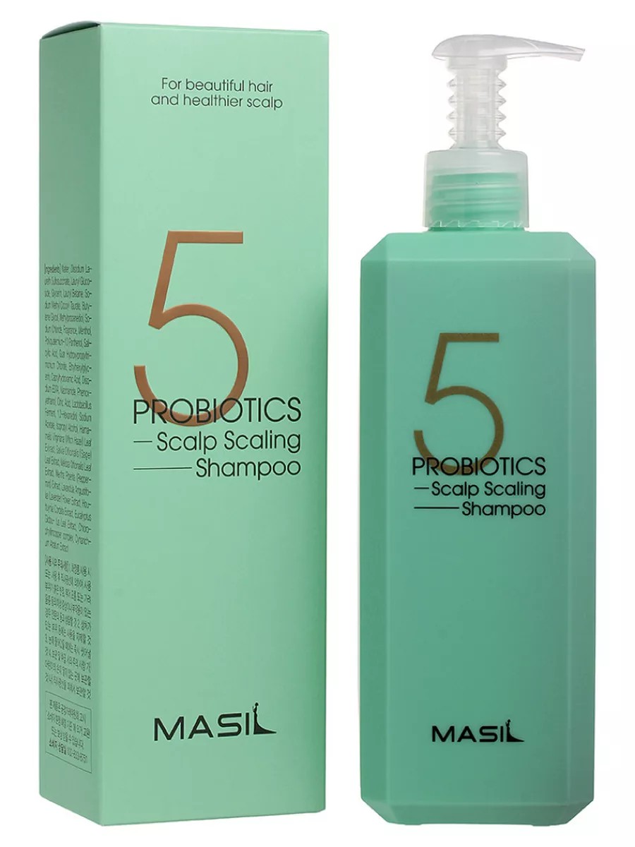 Masil Probiotics Scalp Scaling Shampoo, 500 ml. Masil 5 Probiotics Scalp Scaling Shampoo, a deep-cleansing shampoo with probiotics, thoroughly removes all types of impurities, exfoliates dead skin cells, and normalizes sebaceous gland function. It restores optimal water-lipid balance, prevents dandruff, and reduces oiliness. It strengthens the protective layer, relieves discomfort and itching, and soothes irritated skin. It strengthens hair follicles, accelerates hair growth, and prevents breakage and hair loss. Directions: Apply shampoo to damp, clean hair and scalp, gently massage for 2-3 minutes, and rinse thoroughly with warm water.