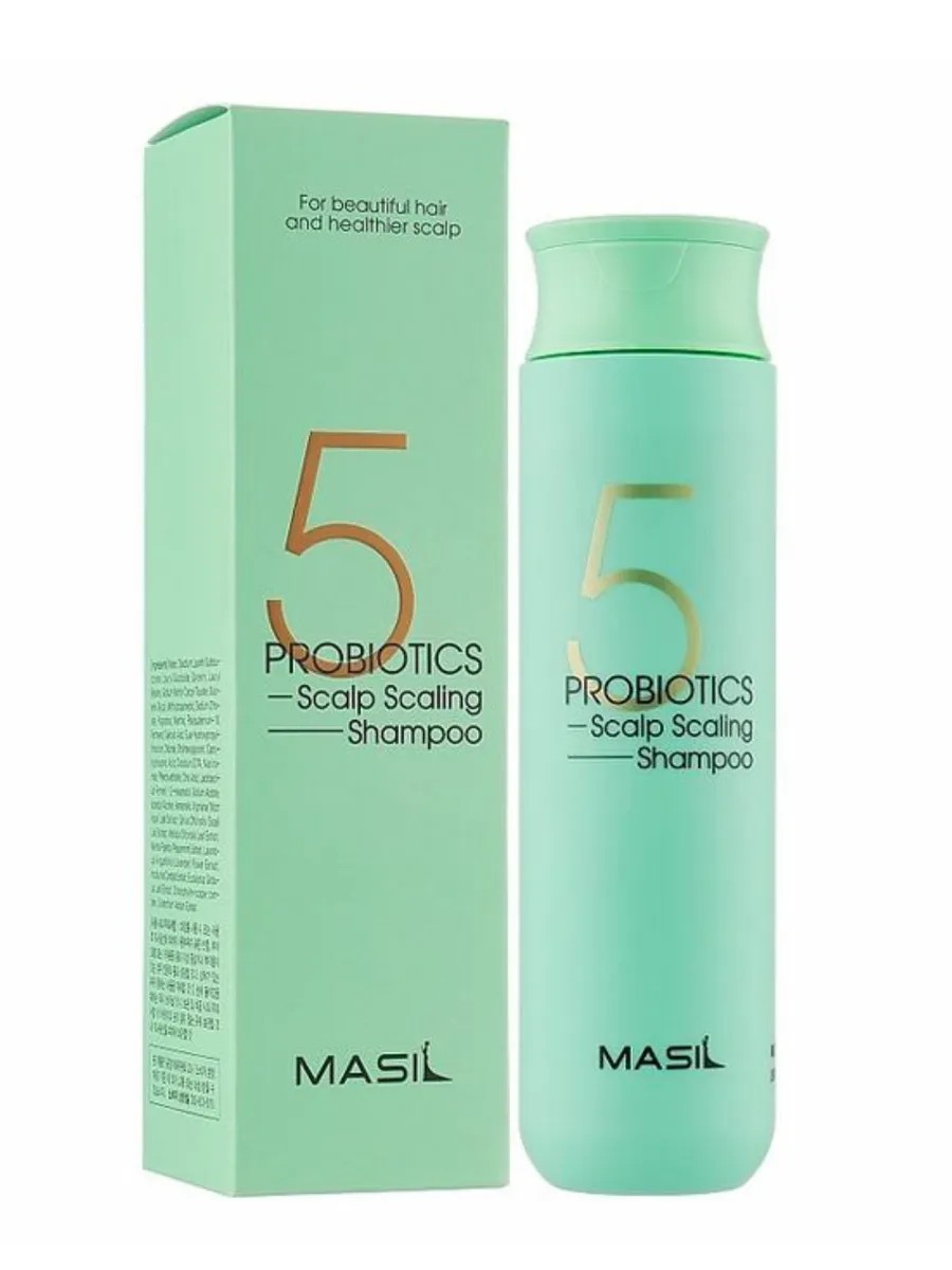 Korean Masil 5 Probiotics Scalp Scaling Shampoo thoroughly removes all types of impurities, exfoliates dead skin cells, and normalizes sebum production. It restores optimal water-lipid balance, prevents dandruff, and reduces oiliness. Contains lactobacilli.