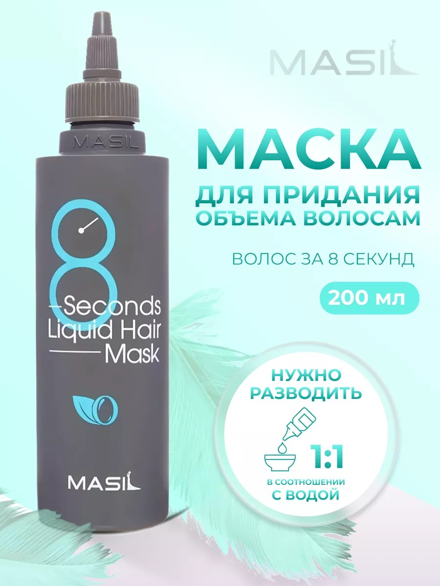 Экспресс-маска для объема волос Masil 8 Seconds Salon Liquid Hair Mask в короткие сроки восстанавливает структуру волоса, укрепляет и возвращает здоровый блеск и сияние. Придает прикорневой объем, делает локоны более гладкими и послушными, борется с излишней жирностью кожи головы.