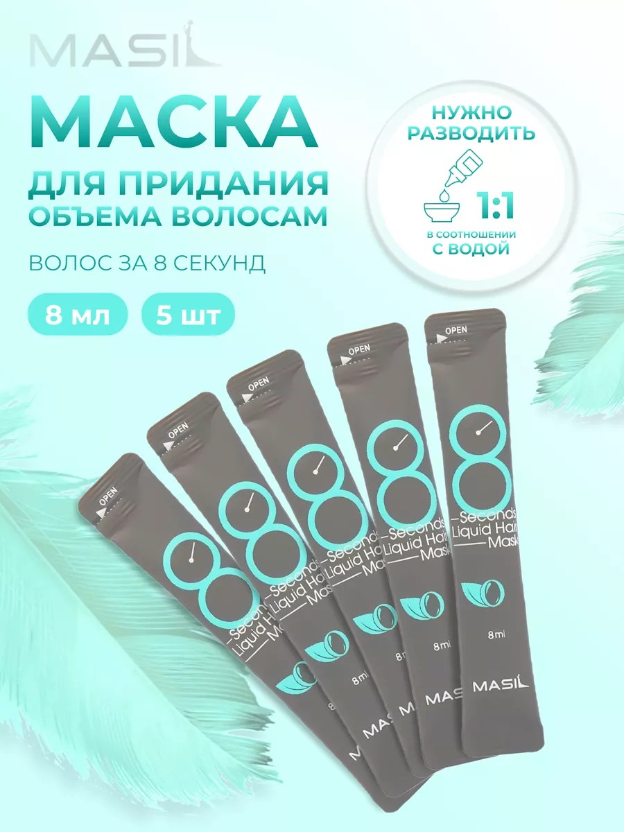Экспресс-маска для объема волос Masil 8 Seconds Salon Liquid Hair Mask в короткие сроки восстанавливает структуру волоса, укрепляет и возвращает здоровый блеск и сияние. Придает прикорневой объем, делает локоны более гладкими и послушными, борется с излишней жирностью кожи головы.