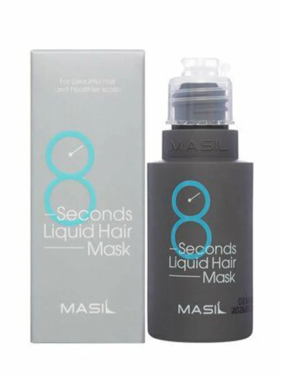 Masil 8 Seconds Liquid Hair Mask quickly makes curly, frizzy, and split ends soft, smooth, and silky, restoring hair structure, strengthening it, and restoring healthy shine and radiance. It adds root volume, makes curls smoother and more manageable, and combats excess scalp oiliness. Its highly concentrated formula penetrates deep into the cuticle and positively restores the structure of strands, restoring elasticity and suppleness to frizzy hair. It is designed to deeply restore even the most damaged hair. This professional Korean product also heals the scalp, normalizes the skin's pH balance, reduces oiliness, strengthens the roots, and prevents hair loss. The mask contains 16 botanical ingredients that strengthen fine hair, leaving it silky and bouncy. This rinse-out, comprehensive hair care treatment, which takes just 8 seconds to intensively restore and significantly improve the condition of your locks, restore strength and shine, strengthen hair, and eliminate breakage. This clear liquid essence nourishes and moisturizes hair for easy combing. How to use: In a non-metal container, mix the mask and water in a 1:1 ratio until the mixture turns from a watery consistency to a creamy one. After shampooing, apply the mask to damp hair, starting a few centimeters from the roots, and distribute evenly over the entire length using massaging motions. Leave on for 8 seconds (for severely damaged hair, leave the mask on for 3-5 minutes), then rinse with warm water. This mask is perfect for color-treated, bleached, red, highlighted, dark, and gray hair. Therefore, we recommend this as a gift for a daughter, mother, grandmother, friend, or even a man. The mini 50ml size is convenient to take on the go or as a sample.