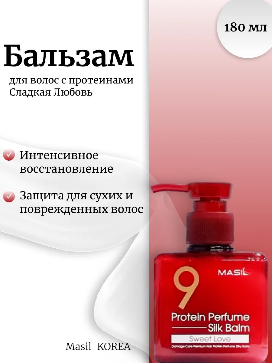 | Комплектация | Masil Бальзам для волос с протеинами Cладкая Любовь 180мл 9 Protein Perfume Silk Balm (Sweet Love) |