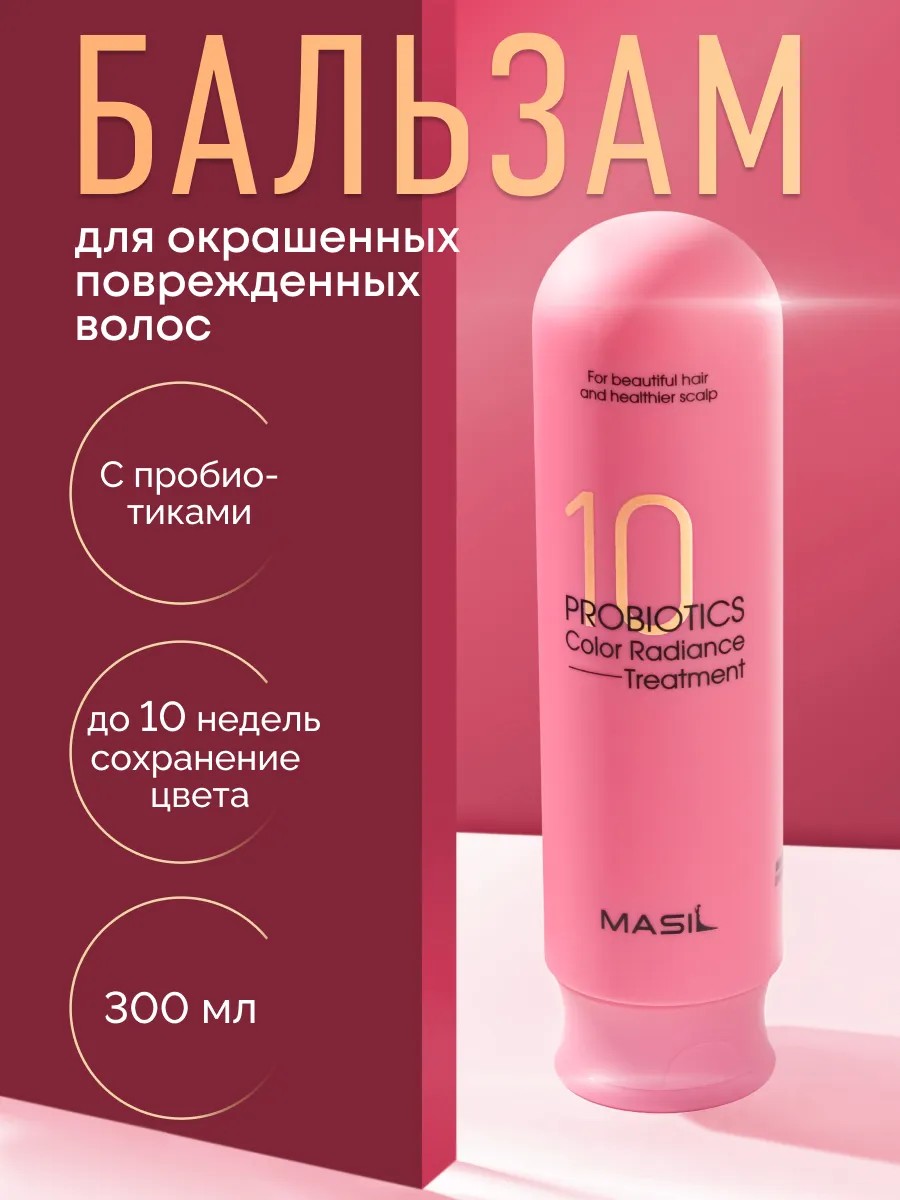 Бальзам с пробиотиками для защиты цвета MASIL 10 PROBIOTICS COLOR RADIANCE TREATMENT— профессиональный бальзам для окрашенных волос, который обеспечивает интенсивный уход и защиту цвета. Это идеальное решение для обесцвеченных, поврежденных и ломких волос. Корейская косметика помогает восстановить структуру волоса и укрепить его, придавая блеск и сияние.