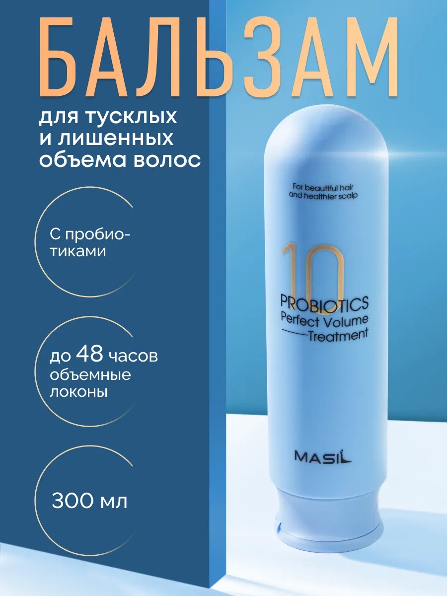 Бальзам для объема волос с пробиотиками MASIL 10 PROBIOTICS PERFECT VOLUME TREATMENT — это средство для ухода за волосами с протеинами, которое помогает восстановить поврежденные волосы, придать им объем и блеск.
