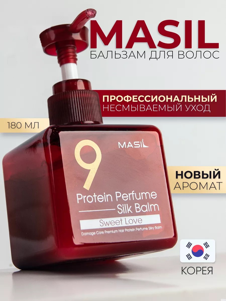Корейский бальзам термозащита Masil 9 Protein Perfume Silk Balm (Sweet Love) - это несмываемый уход для всех типов волос с кератином, коллагеном, гидролизованным шелком и маслом макадамии. Средство «15 в 1» для восстановления и ламинирования волос. Бальзам в красном флаконе SWEET LOVE (сладкая любовь) - с усиленным парфюмерным акцентом, с ярким ароматом цветов гибискуса и розы.