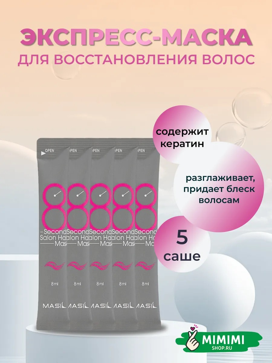 | Комплектация | Маски для волос с салонным эффектом 8мл - 5 шт или 20 шт |