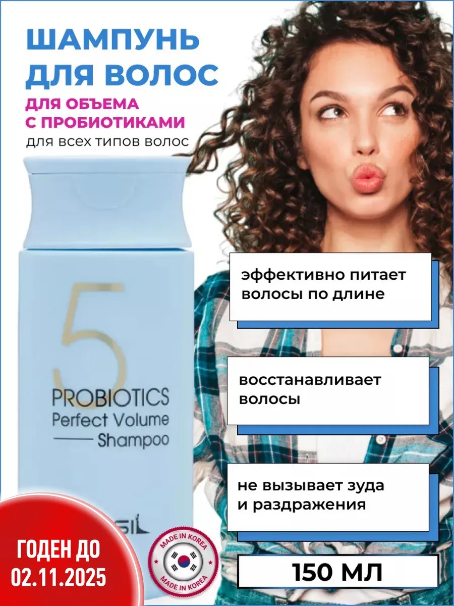 Шампунь для волос увлажняющий и восстанавливающий с пробиотиками для придания объема masil «5 PROBIOTICS PERFECT VOLUME SHAMPO», 150 мл. Увлажняющий шампунь для волос - идеальное решение для женщин, чьи волосы подверглись повреждениям от окрашивания или других химических процедур.