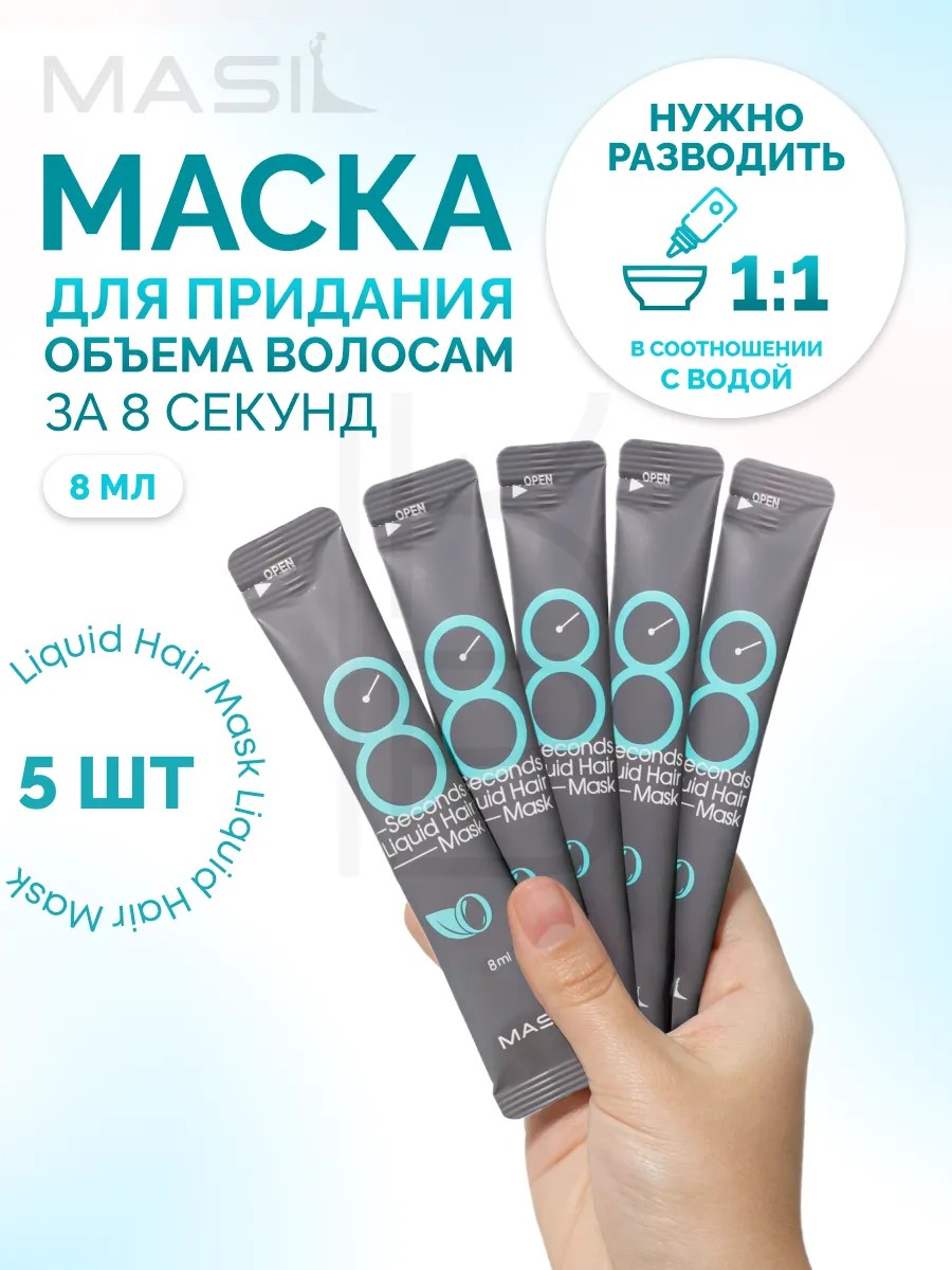 Набор освежающих масок для придания объема волос MASIL 8 SECONDS SALON LIQUID HAIR MASK.