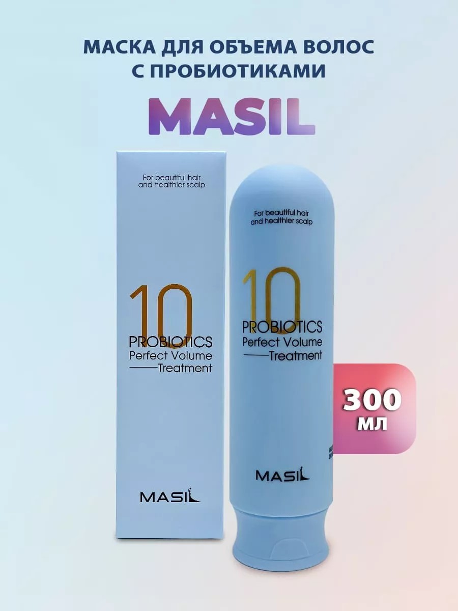 Masil 10 Probiotics Perpect Volume Treatment Маска для объема волос с пробиотиками «оживляет» волосы, устраняет тусклость и возвращает прядям здоровый блеск, делает локоны шелковистыми и послушными. Регулирует работу сальных желез, снижает жирность кожи, бережно отшелушивает ороговевшие клетки. Маска укрепляет защитный слой и повышает барьерные функции клеток, способствуя удержанию влаги. Устраняет сухость и шелушения, оздоравливает микробиом кожи, усиливает приток питательных веществ к корням волос. Восстанавливает поврежденную структуру волоса, возвращает естественный объем, разглаживает кератиновые чешуйки. Маска приятно освежает кожу и легко смывается водой. Средство не содержит силиконы и сульфаты. Обладает слабо-кислым pH 5.0-6.0. Способ применения: Равномерно нанесите необходимое количество средства на волосы, массируя их. После тщательно промойте теплой водой. Объём: 300 мл