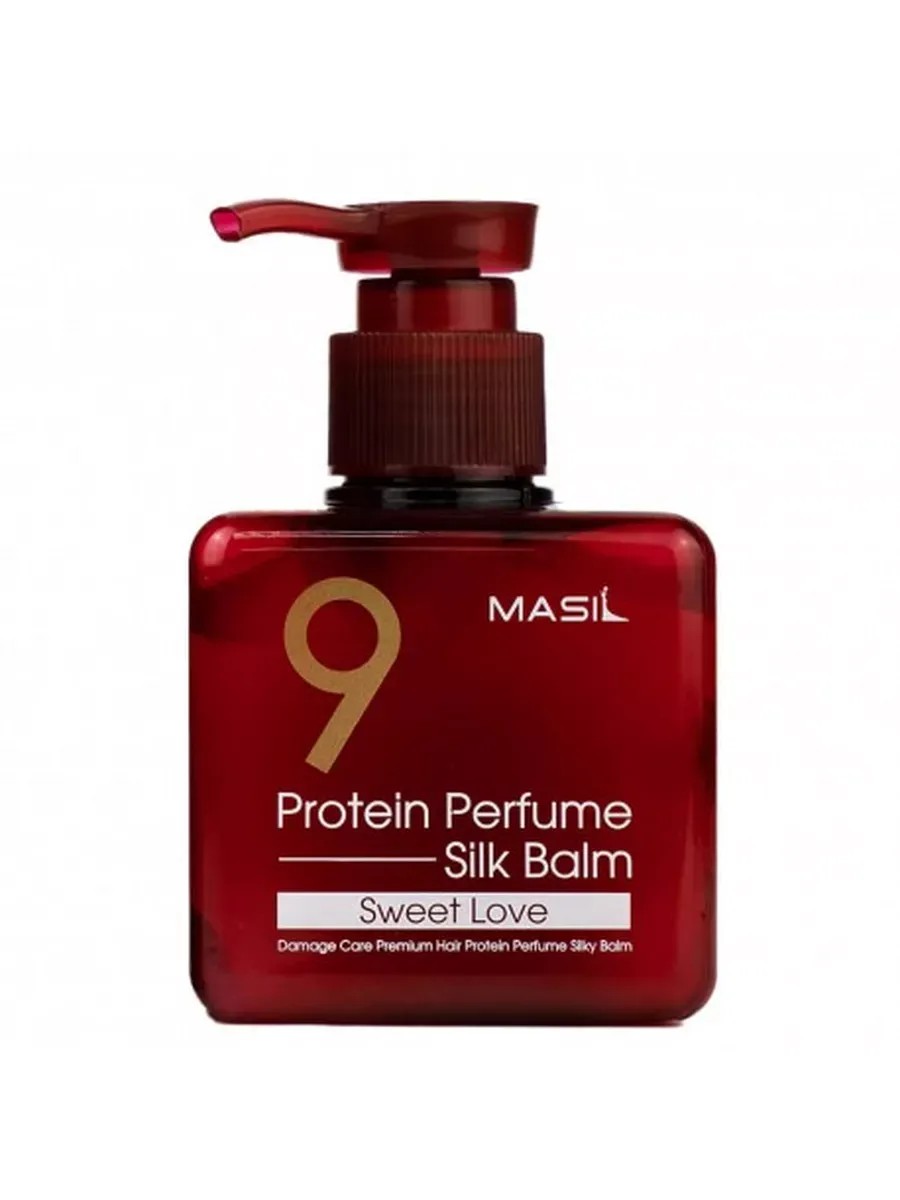 The perfumed Korean hair balm MASIL 9 PROTEIN PARFUME SILK BALM SWEET LOVE offers ultimate restoration, silkiness, and elasticity, as well as reliable thermal protection. Use it for light straightening with a laminating effect, for adding volume, and for styling your hair, as a final leave-in treatment (after shampoo and the 8-second mask).
