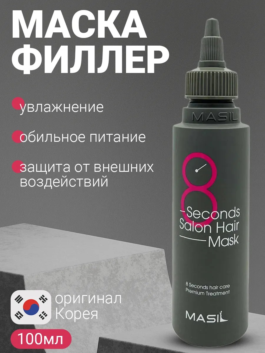 2) Leave the product on for 8 seconds (for severely damaged hair, it is recommended to keep the mask on for 3-5 minutes);