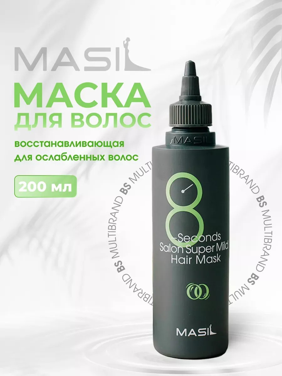Маска для быстрого восстановления волос MASIL 8 Seconds Salon Hair Mask делает кудрявые, вьющиеся и секущиеся волосы мягкими, гладкими, шелковистыми и возвращает локонам здоровый блеск. Высококонцентрированная формула средства проникает глубоко в кутикулу волоса и положительно влияет на восстановление структуры прядей, возвращает пушистым волосам упругость и эластичность. Направлена на глубокое восстановление даже самых повреждённых волос. Профессиональное корейское средство также оздоравливает кожу головы, нормализует рН баланс кожи, уменьшает жирность, укрепляет корни и препятствует выпадению волос. Маска содержит 16 растительных ингредиентов таких как лакрица, зеленый чай, лаванда, лимон, центелла, апельсин, гинкго и другие экстракты, которые укрепляют тонкие волосы, делая их всегда шелковистыми и струящимися. Смываемый комплексный уход за волосами всего за 8 секунд способен интенсивно восстановить и значительно улучшить состояние прядей, вернуть силу и блеск волосам, укрепить их и устранить ломкость. Бальзам представляет собой прозрачную жидкую эссенцию, которая питает и увлажняет волос, для легкого расчесывания. Способ применения ухода за волосами: В неметаллической ёмкости необходимо смешать маску и воду в пропорции 1:1, чтобы водянистая консистенция превратилась в кремообразную. После мытья головы шампунем нанести маску на влажные волосы, отступив от корней несколько сантиметров, равномерно распределить по всей длине растирающими движениями, оставить на 8 секунд (при сильно повреждённых волосах маску рекомендуется держать 3-5 минут), затем смыть теплой водой. Маска прекрасно подойдет для окрашенных, осветленных, рыжих, мелированных, темных и седых волос. Поэтому рекомендуем присмотреться в качестве подарка для дочки, мамы, бабушки, подруги, а так же мужчины. Мини объем 50мл удобно взять в дорогу или как пробник.