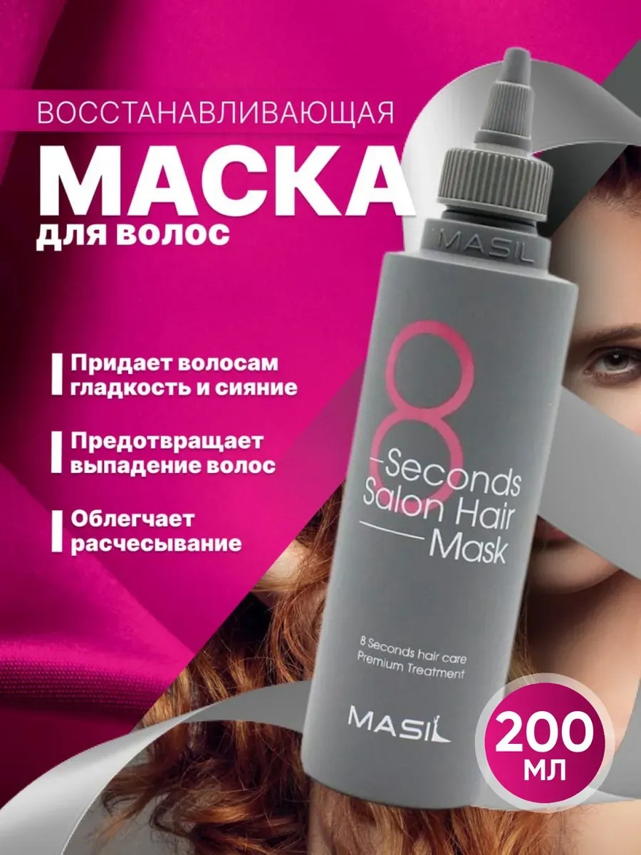 Корейская восстанавливающая маска для волос 8 секунд Masil 8 seconds salon hair mask в выгодном объеме 200 мл способна за одно применение сделать поврежденные волосы более шелковистыми и увлажненными от корней волос до самых кончиков.