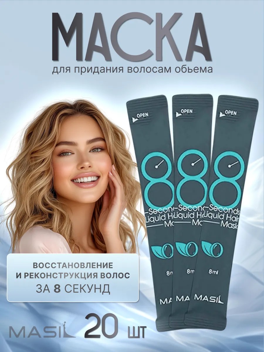 A set of refreshing masks for hair volume at the roots Masil 8 seconds salon liquid hair mask in a sachet (20 pcs) is a professional restorative mask that will help you return your hair to root volume in 8 seconds.